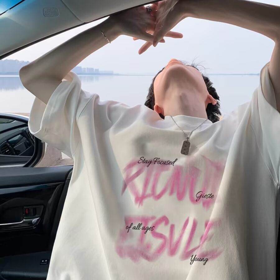 青少年男装夏季纯棉短袖t恤男套装潮流帅气学生宽松休闲运动穿搭