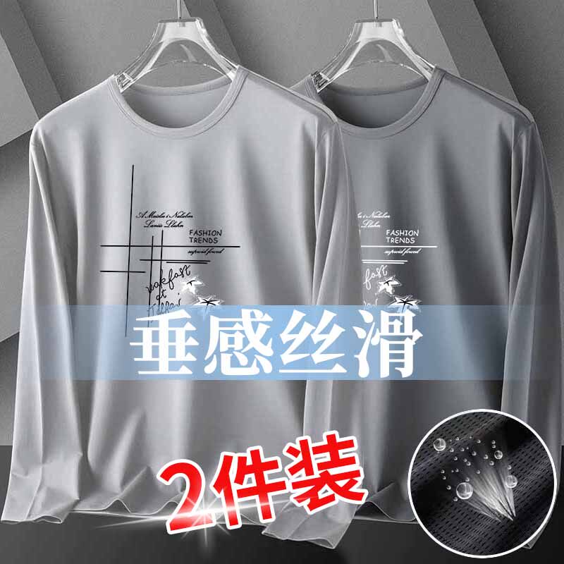 2件】大码修身长袖t恤夏季薄款青少年帅气印花打底薄款T恤打底衫