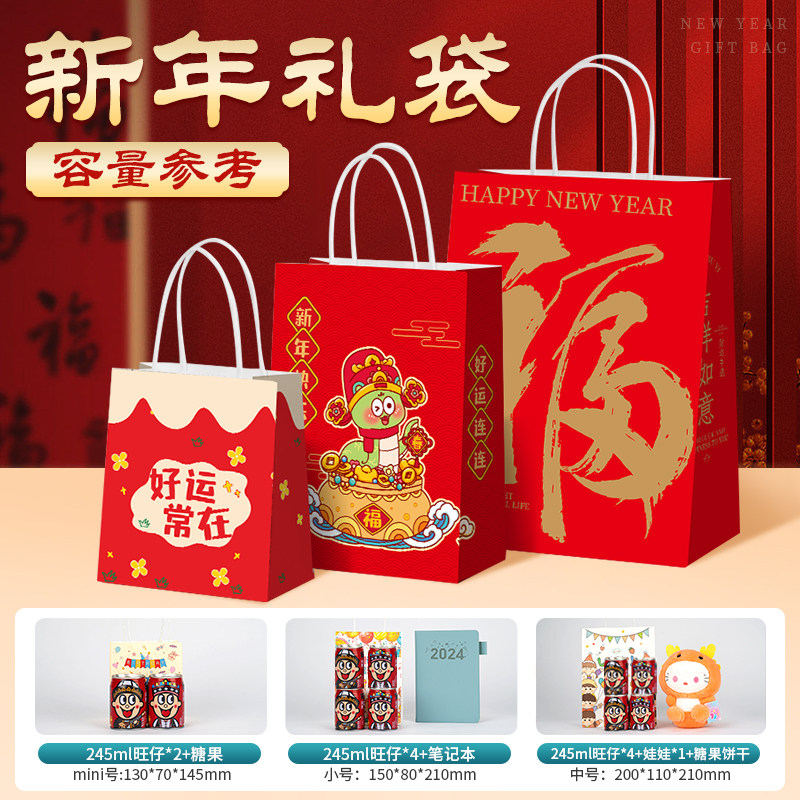新年礼品袋马年手提袋礼物小号元旦伴手礼袋包装袋糖果牛皮纸袋子