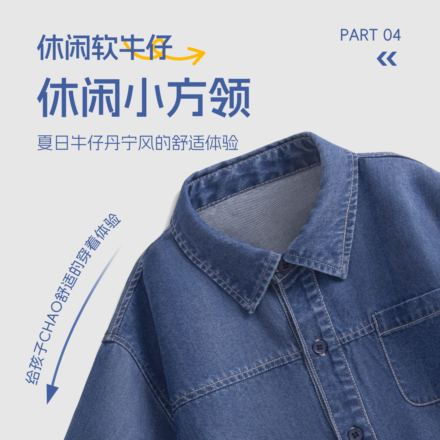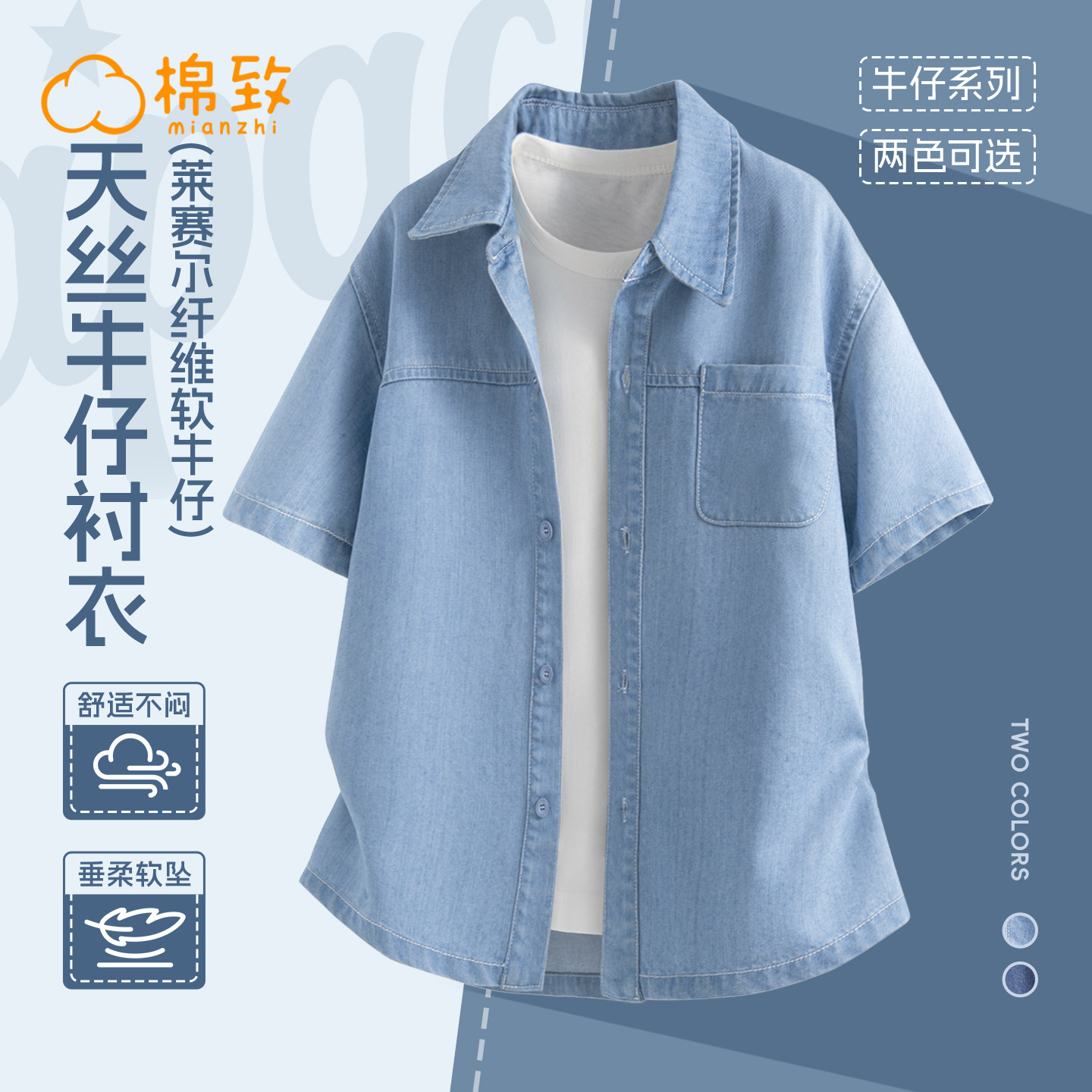 棉致男童短袖t恤2026新款夏季薄款半袖中大童牛仔外套儿童衬衣男