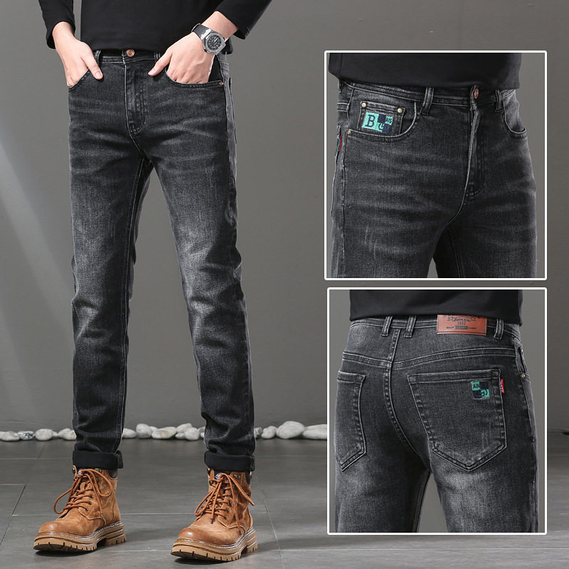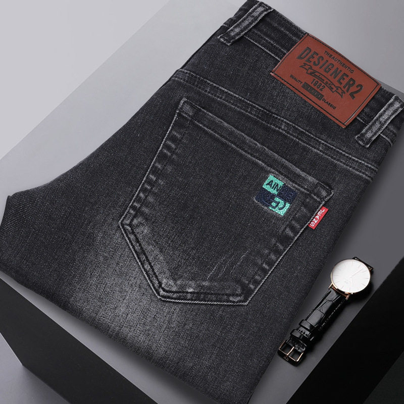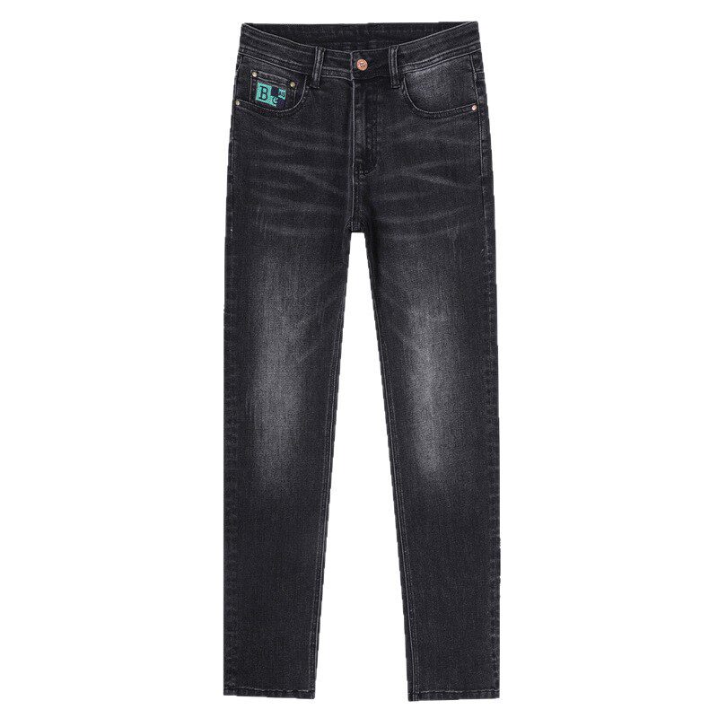 2026春秋新款外贸刺绣高端黑灰牛仔裤男款修身直筒弹力休闲裤