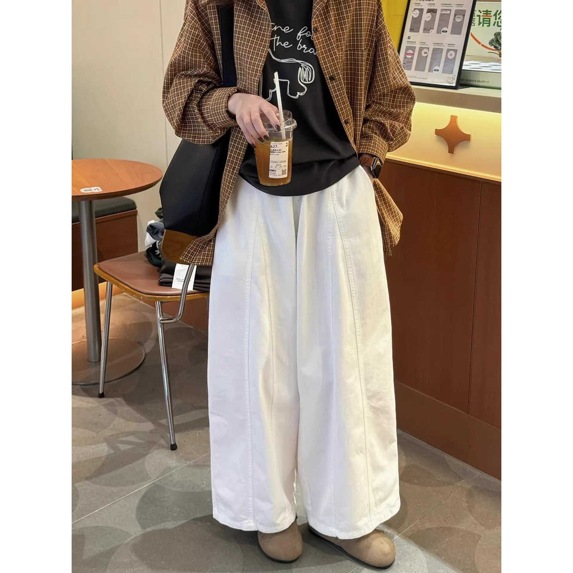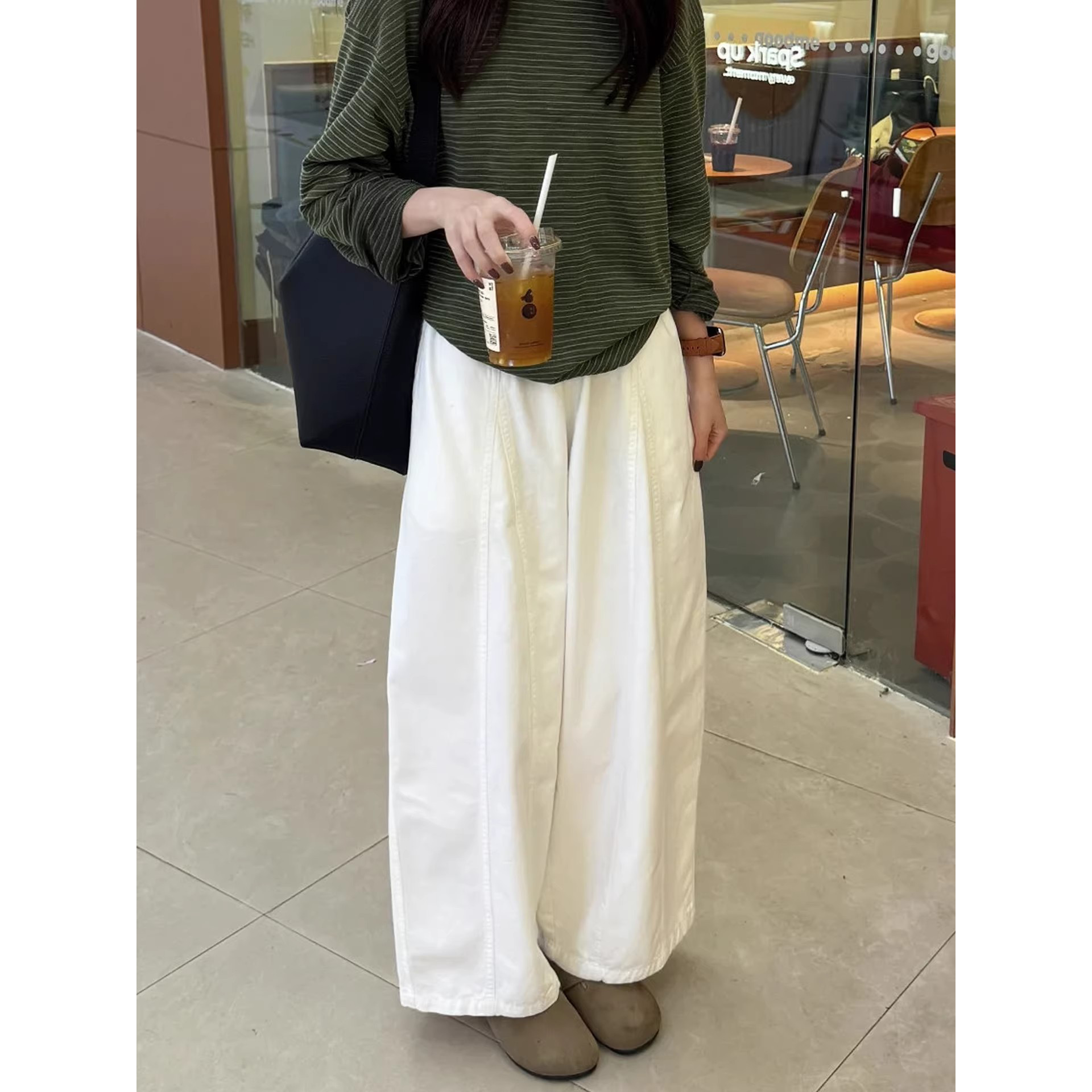 舒适松弛感裤子白色阔腿裤女款2026新款春夏胖妹妹显瘦宽松弯刀裤