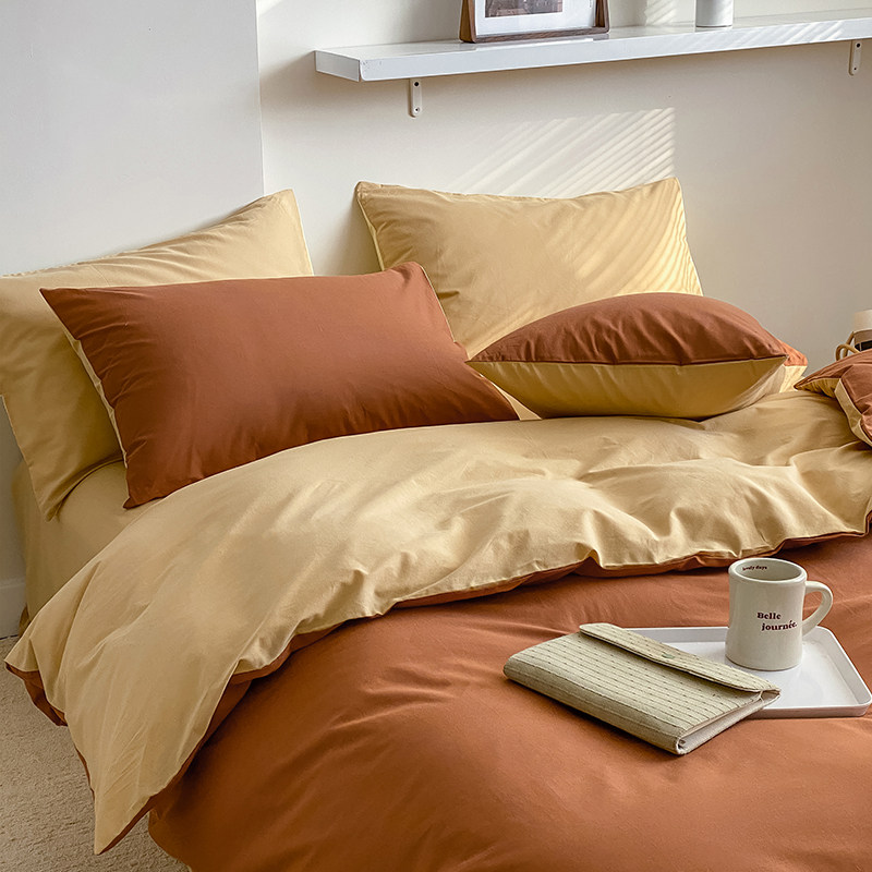 ins简约纯色双拼全棉水洗棉四件套 北欧100棉春夏纯棉床上用品