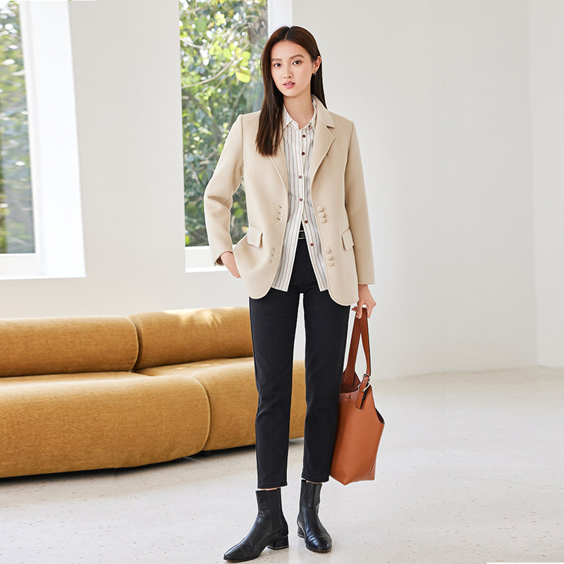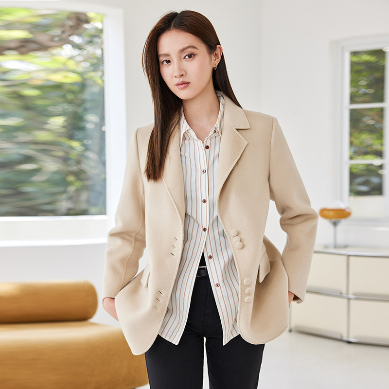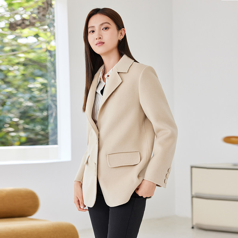 311线报网描述:纯羊毛单排扣西装毛呢外套女短款