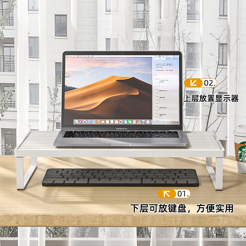 笔记本电脑增高支架桌面游戏本散热支撑架键盘托架烧烤架办公桌宿舍显示器金属镂空底座抬高支架收纳置物架