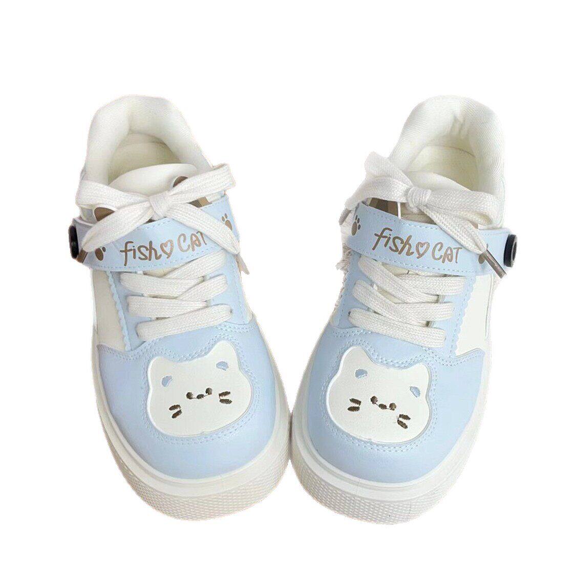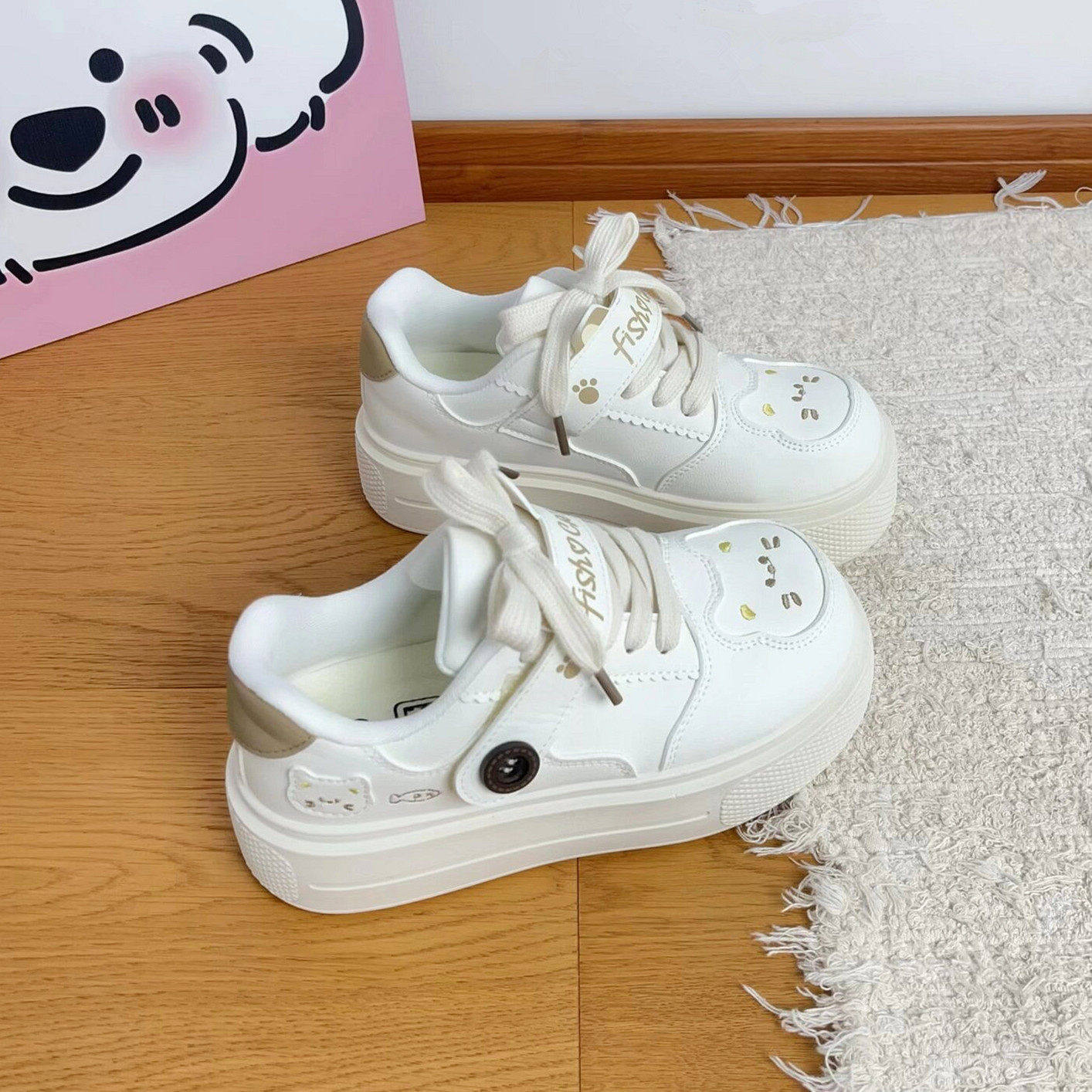 增高厚底鞋女2026新款春季小众百搭板鞋可爱猫咪小白鞋学生面包鞋
