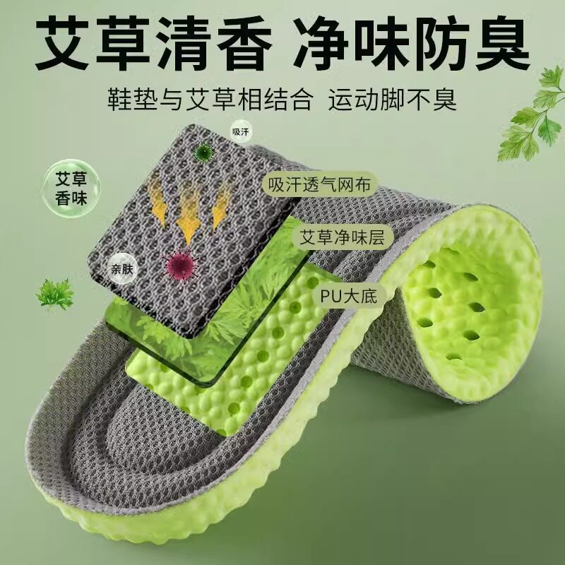 防臭鞋垫男款女超软久站不累踩屎感艾草除臭吸汗透气运动气垫减震
