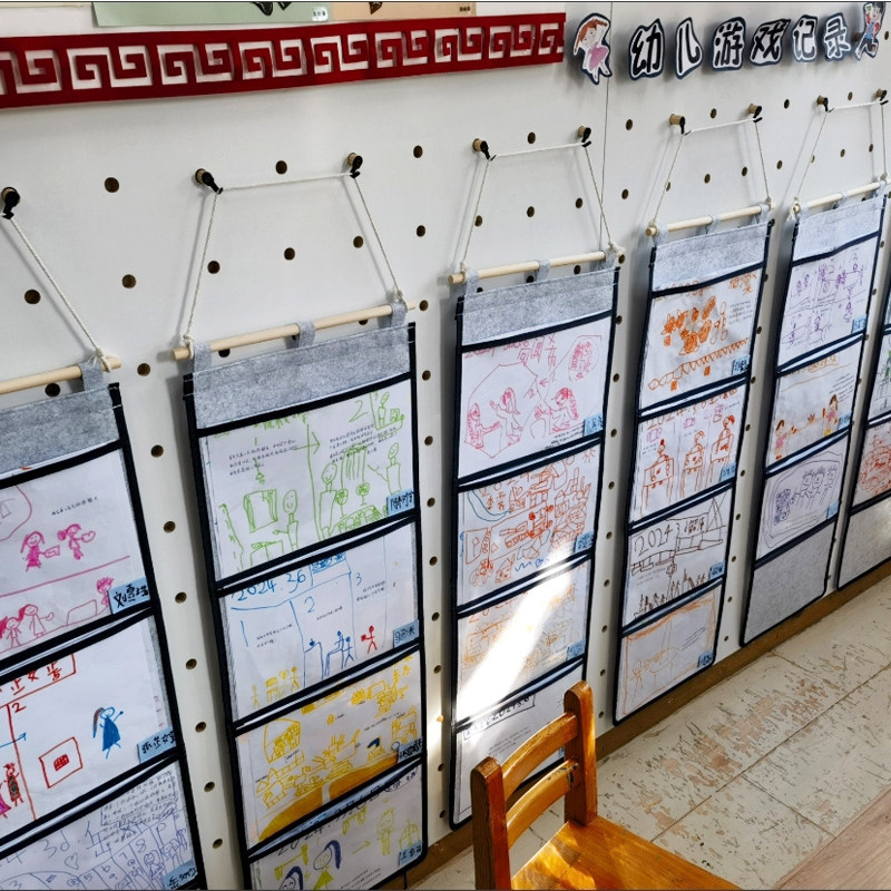 幼儿园作品展示袋美术透明收纳挂袋墙上A4画袋墙面挂式A3书袋挂墙