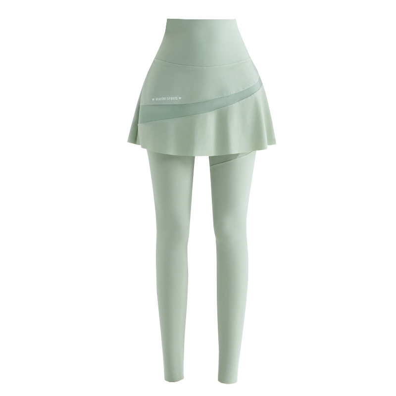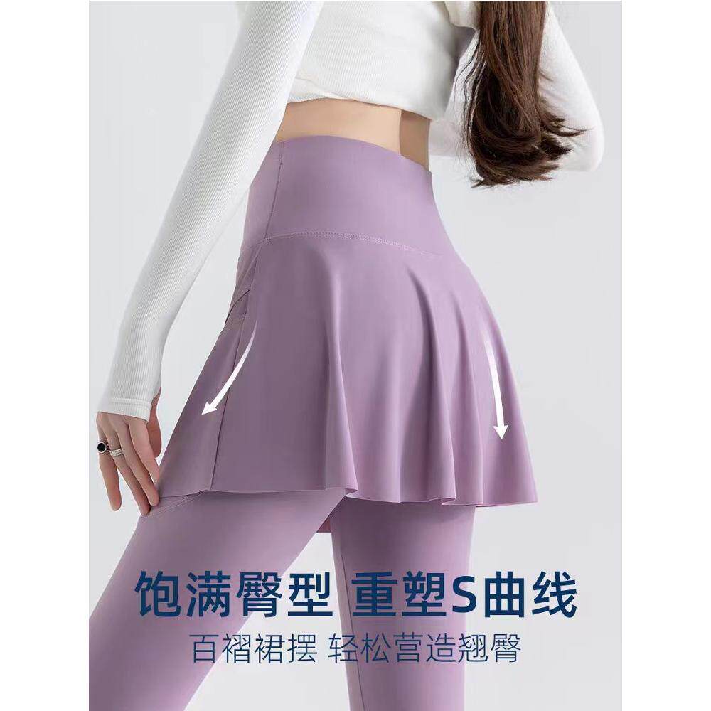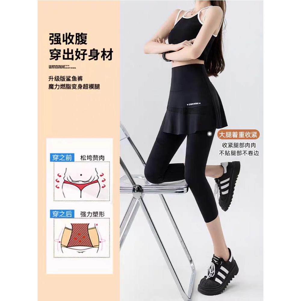 七分瑜伽裤裙女假两件高腰口袋薄款网纱遮挡裙鲨鱼裤大码运动裙裤
