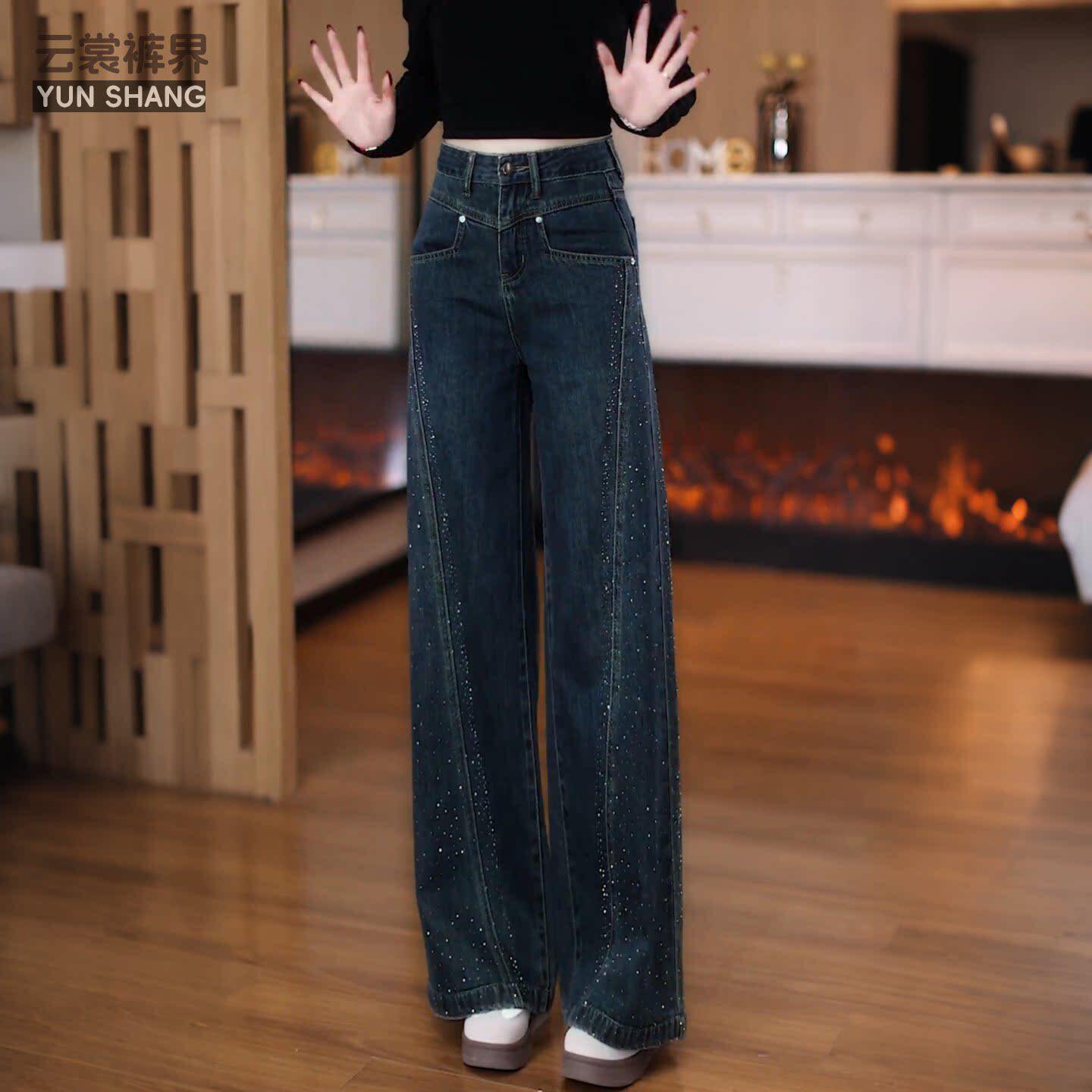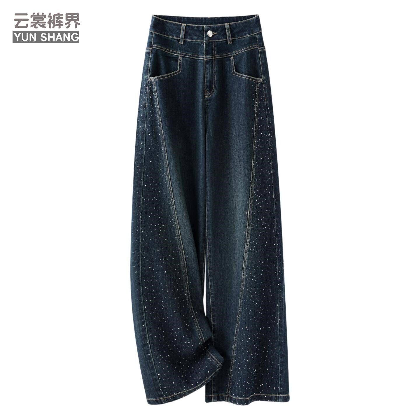 烫钻牛仔裤女2026新款春秋季版型好看的阔腿裤子女款高腰九分裤女