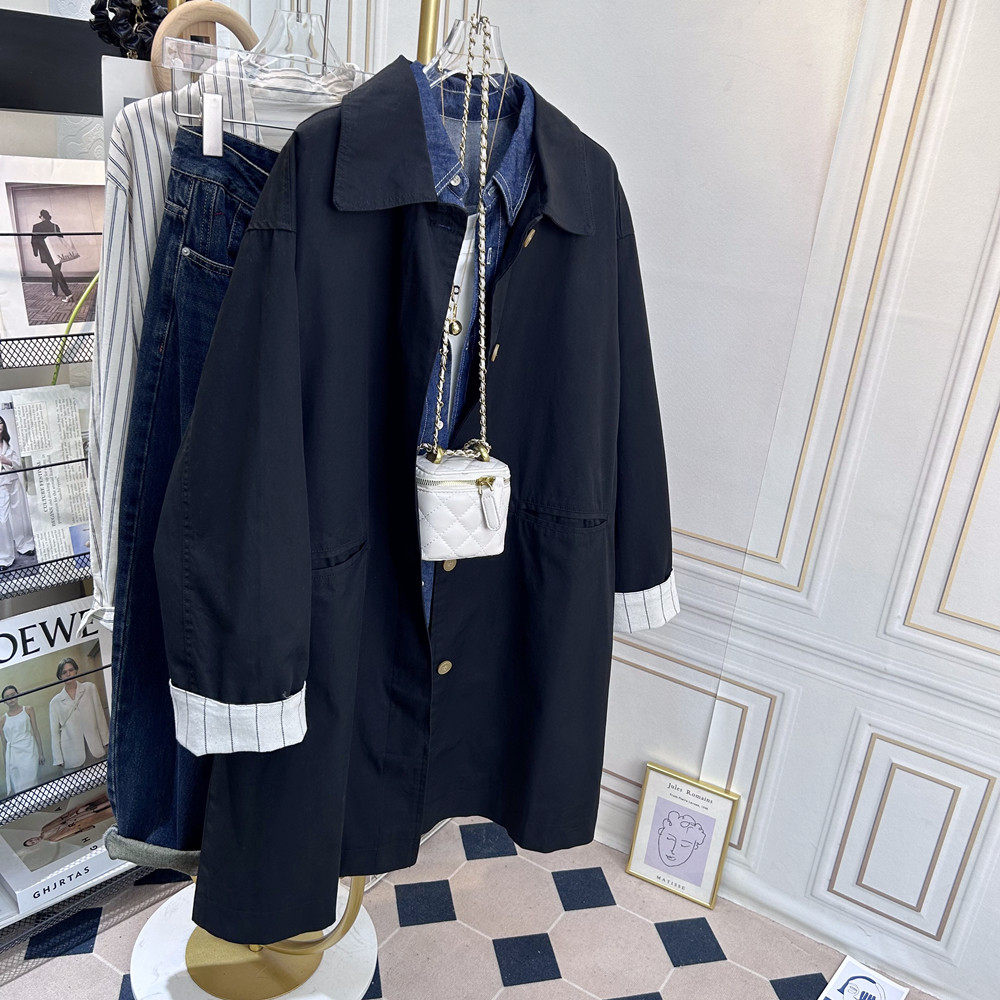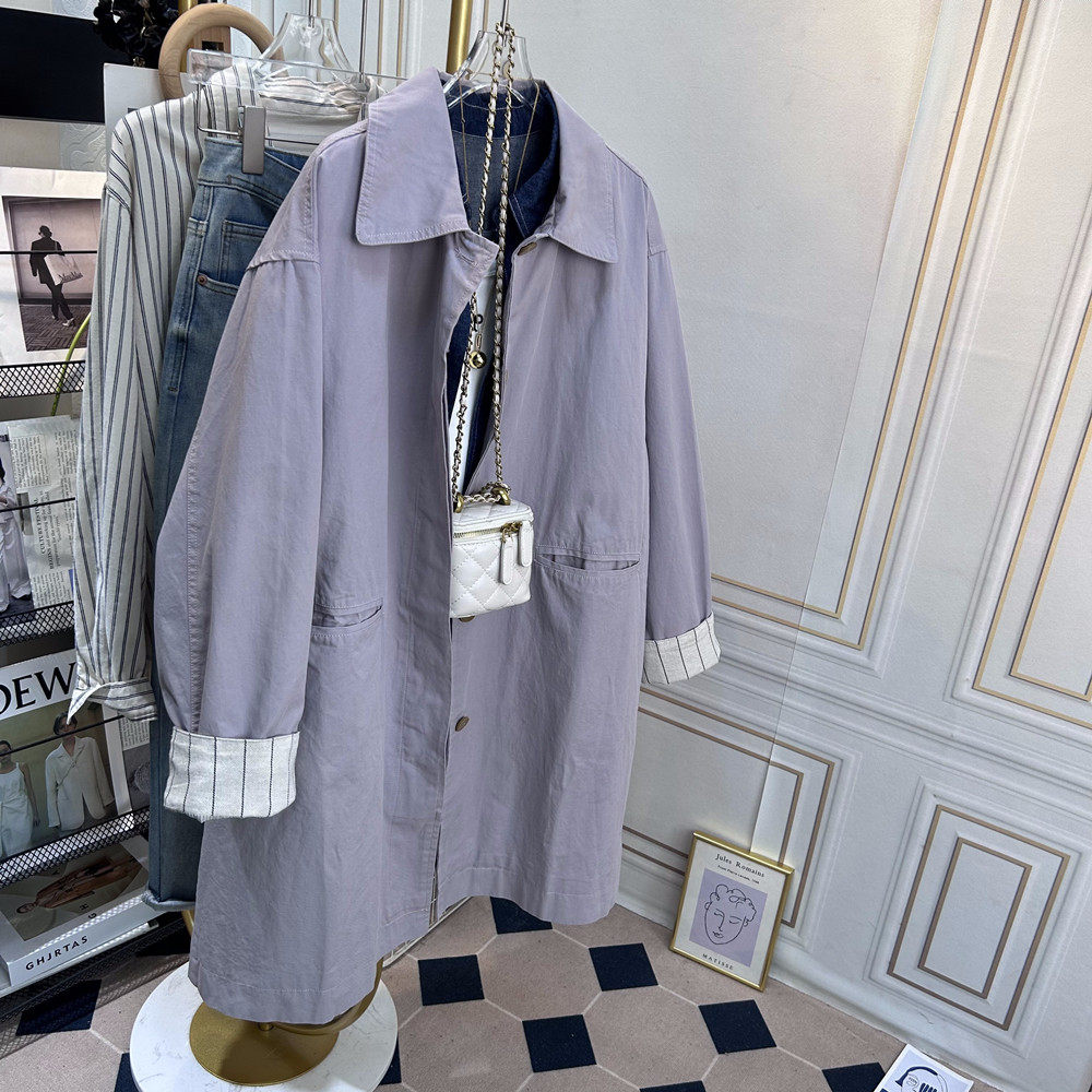 翻领休闲风衣女款2026新款中长款宽松慵懒松弛感日系工装外套春秋