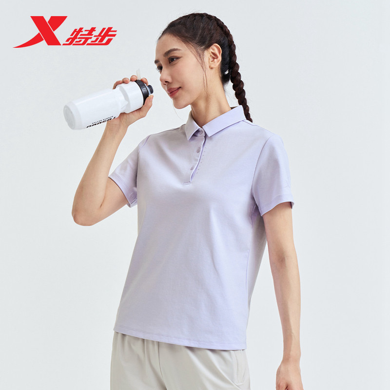 特步POLO衫女款短袖女夏季新款简约百搭运动短袖975228020053