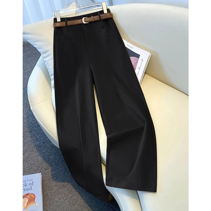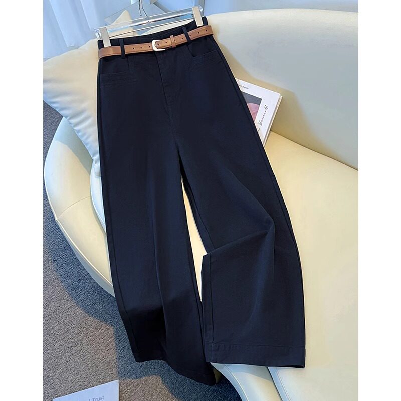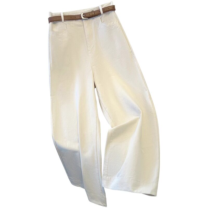 拉夏贝尔白色牛仔阔腿女裤秋季2026新款高腰九分裤垂感窄版直筒裤