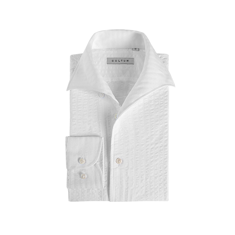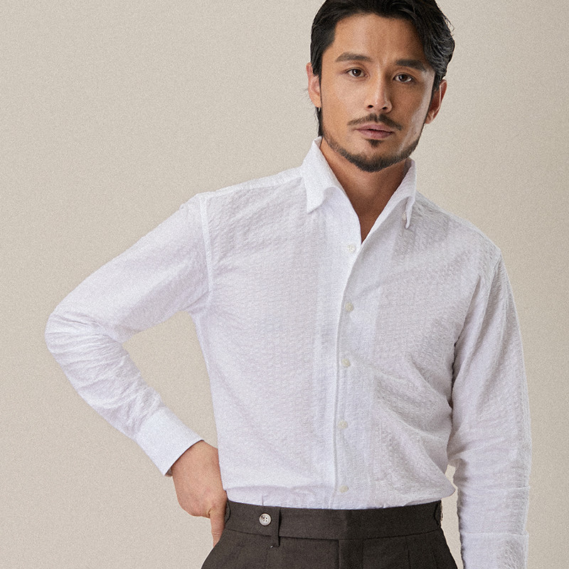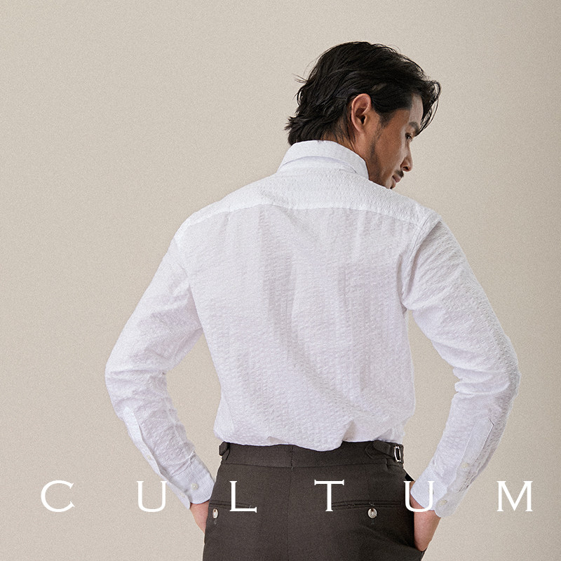CULTUM轻薄透气泡泡纱一片领纽扣领衬衫男长袖商务绅士帅气白衬衣