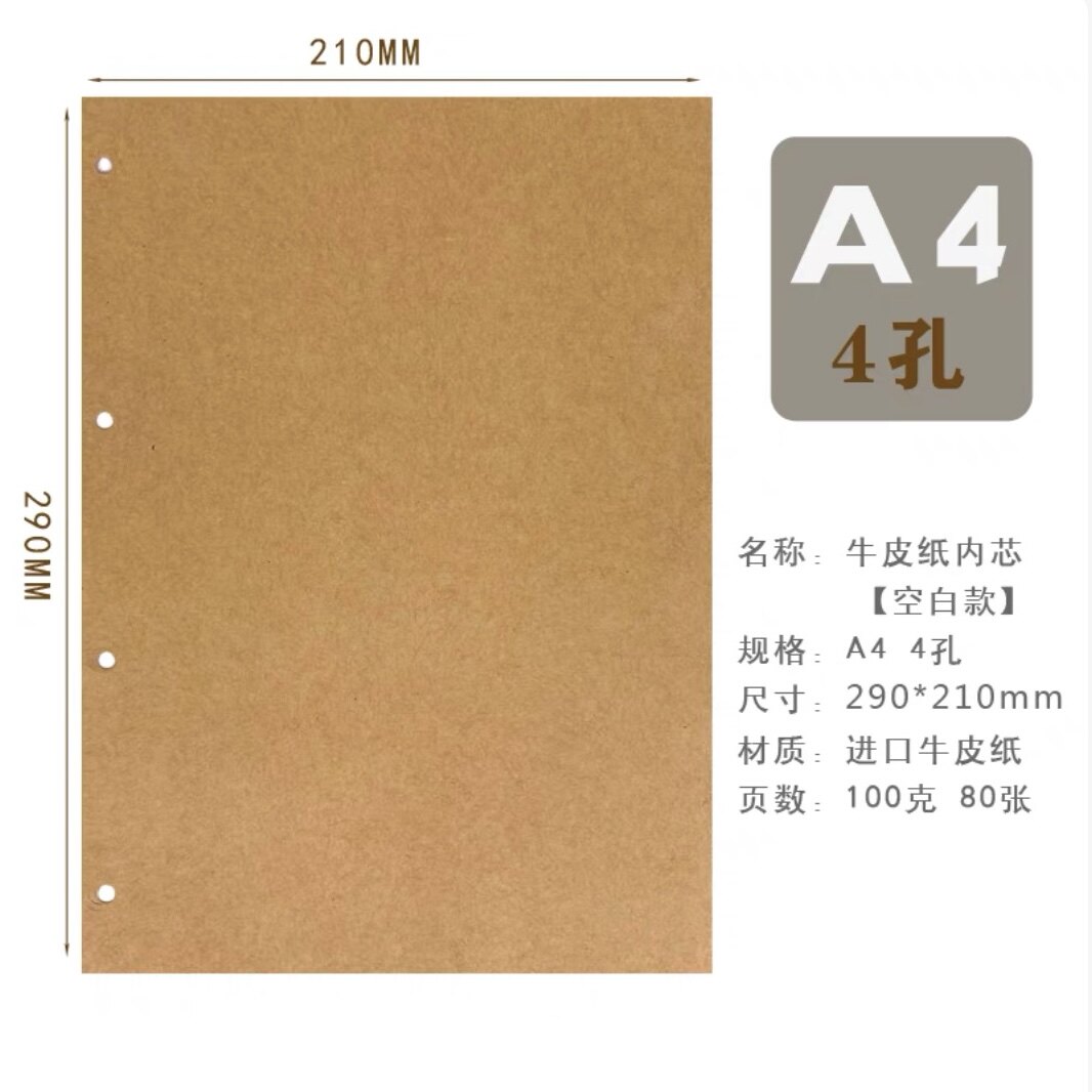 牛皮纸内页A4B5A5A6A7手账本活页记事本复古空白日系简约风横线