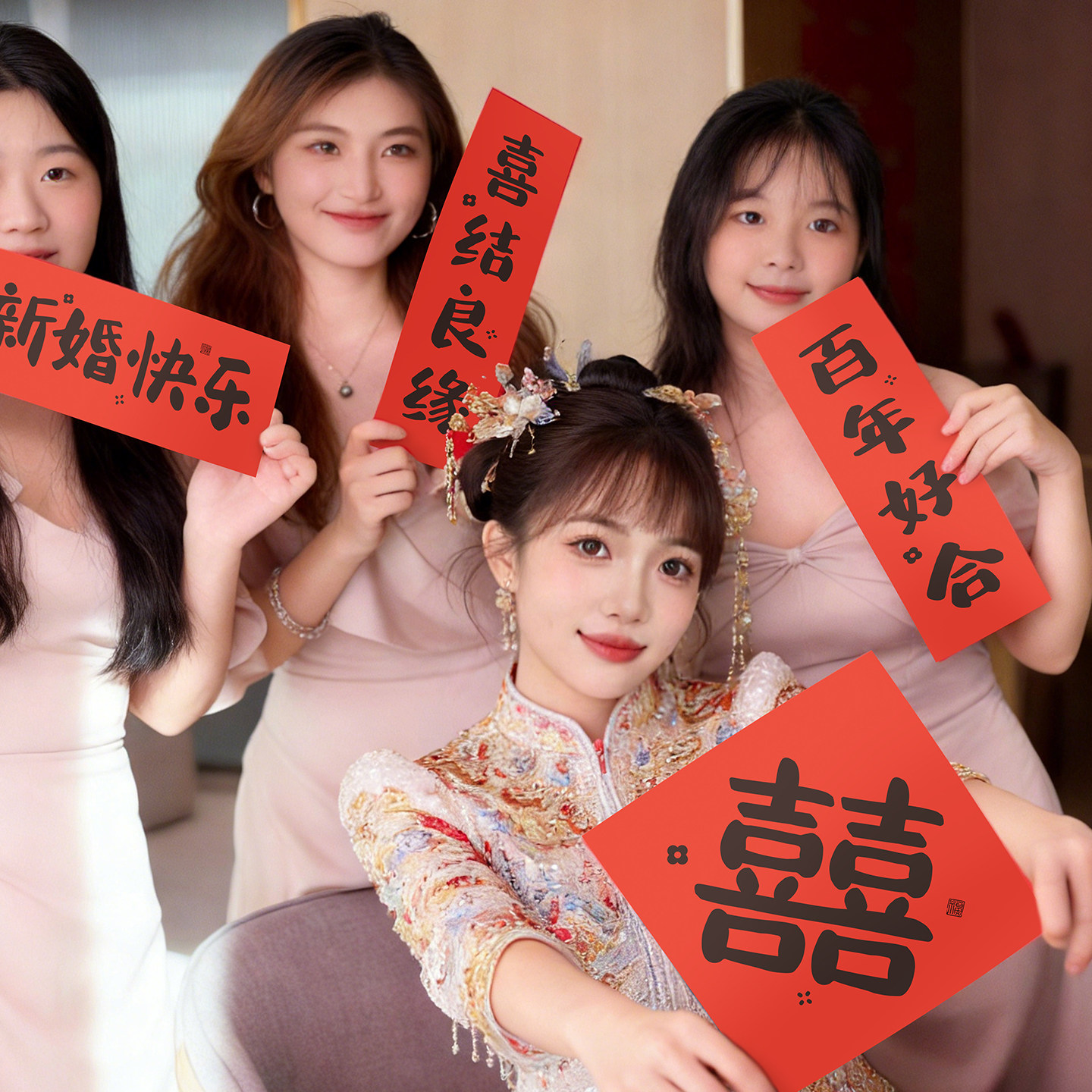 结婚晨袍拍照道具婚礼接亲游戏创意摆拍照神器氛围出片小对联喜字