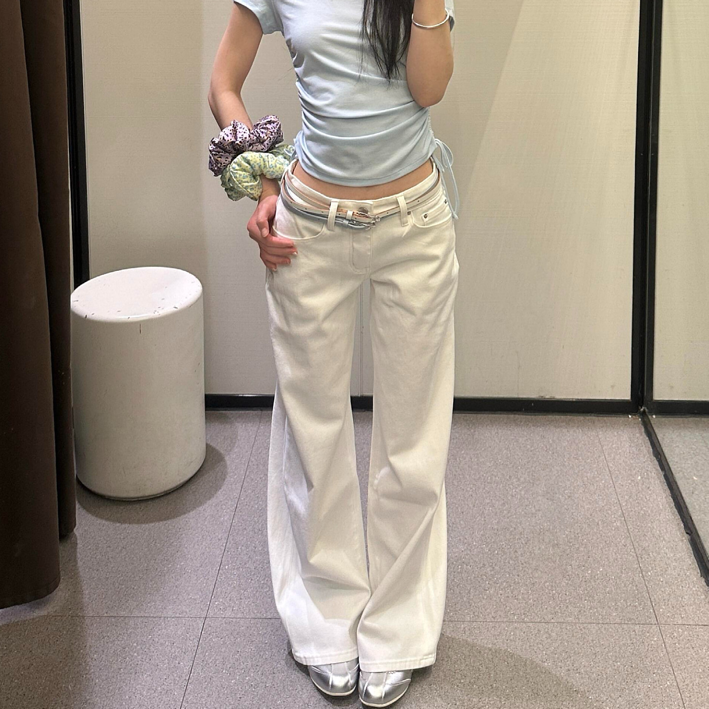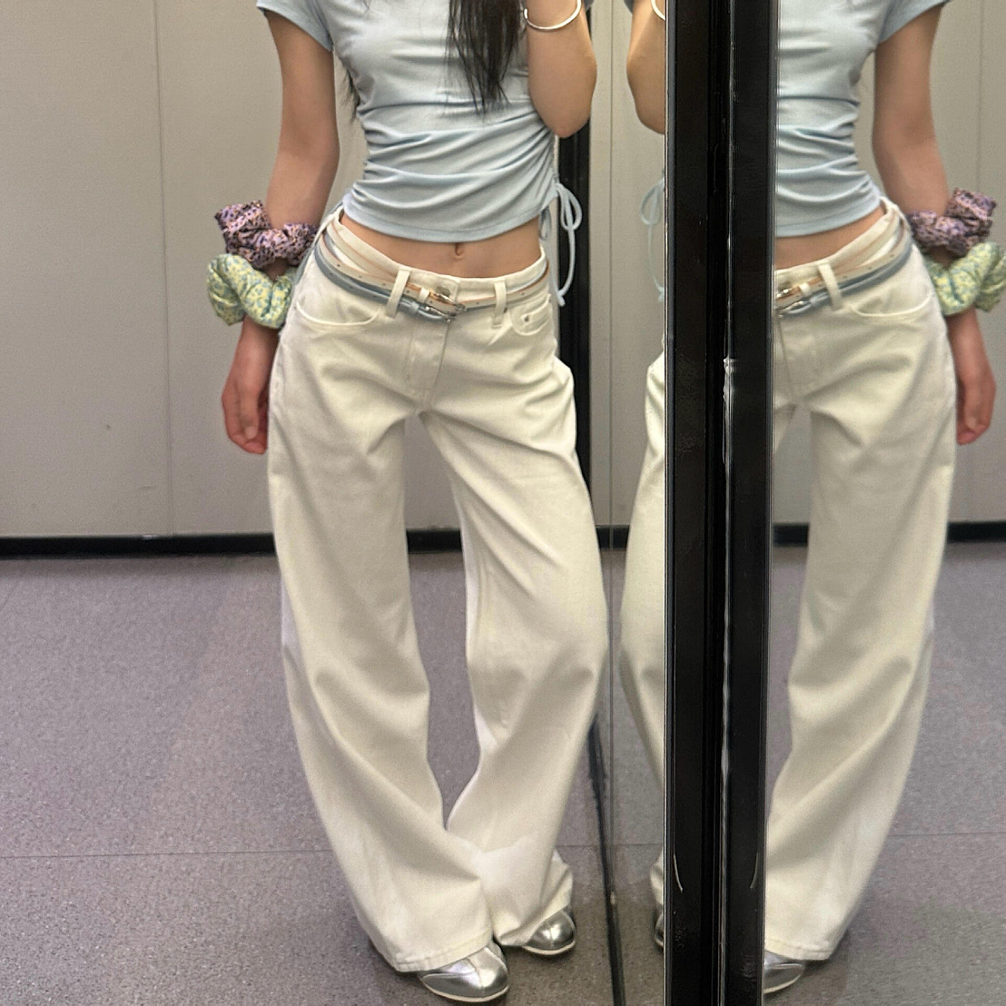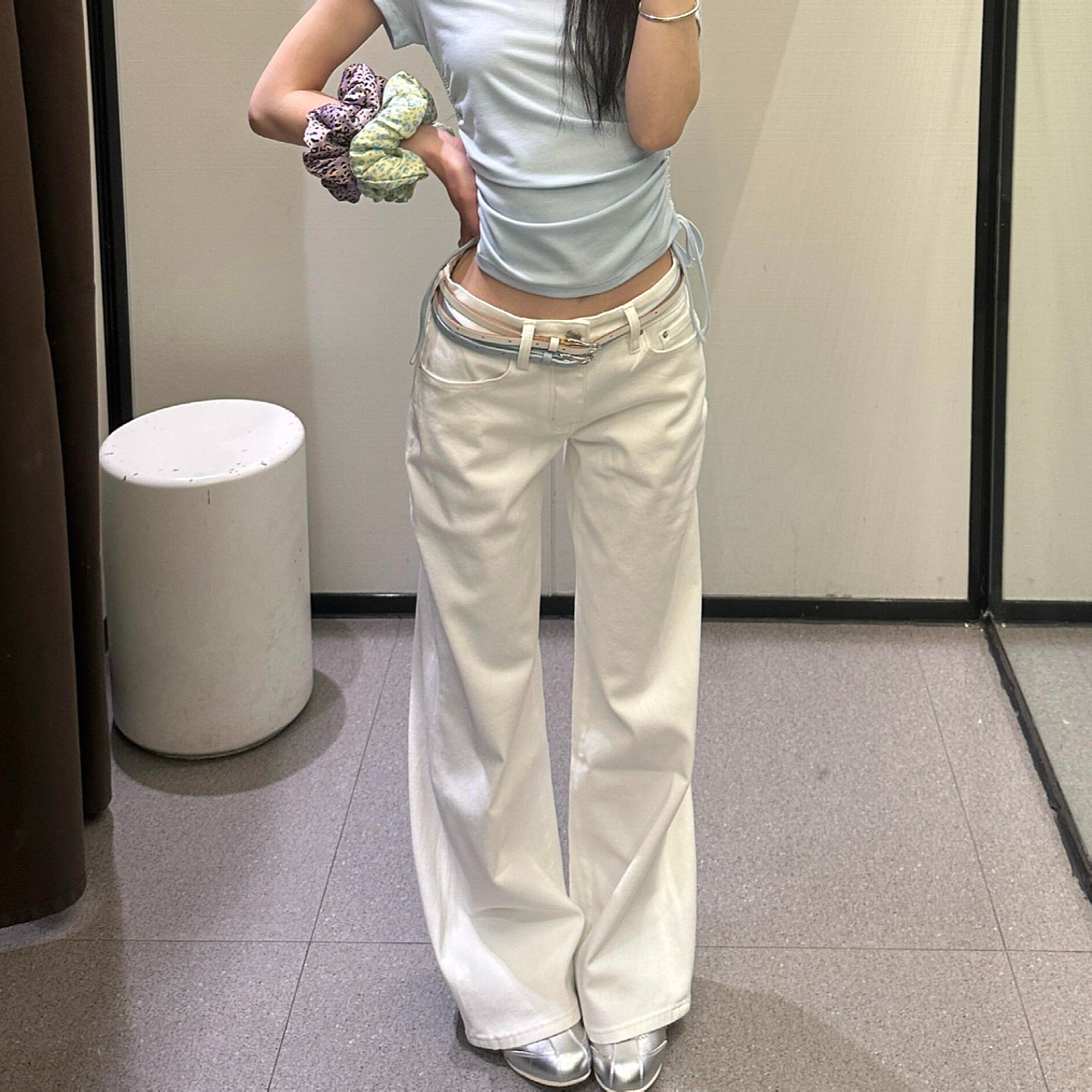 大码美式复古白色低腰直筒牛仔裤女2026新款宽松显瘦窄版阔腿长裤