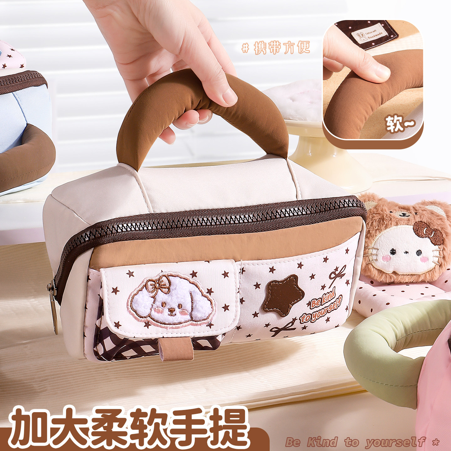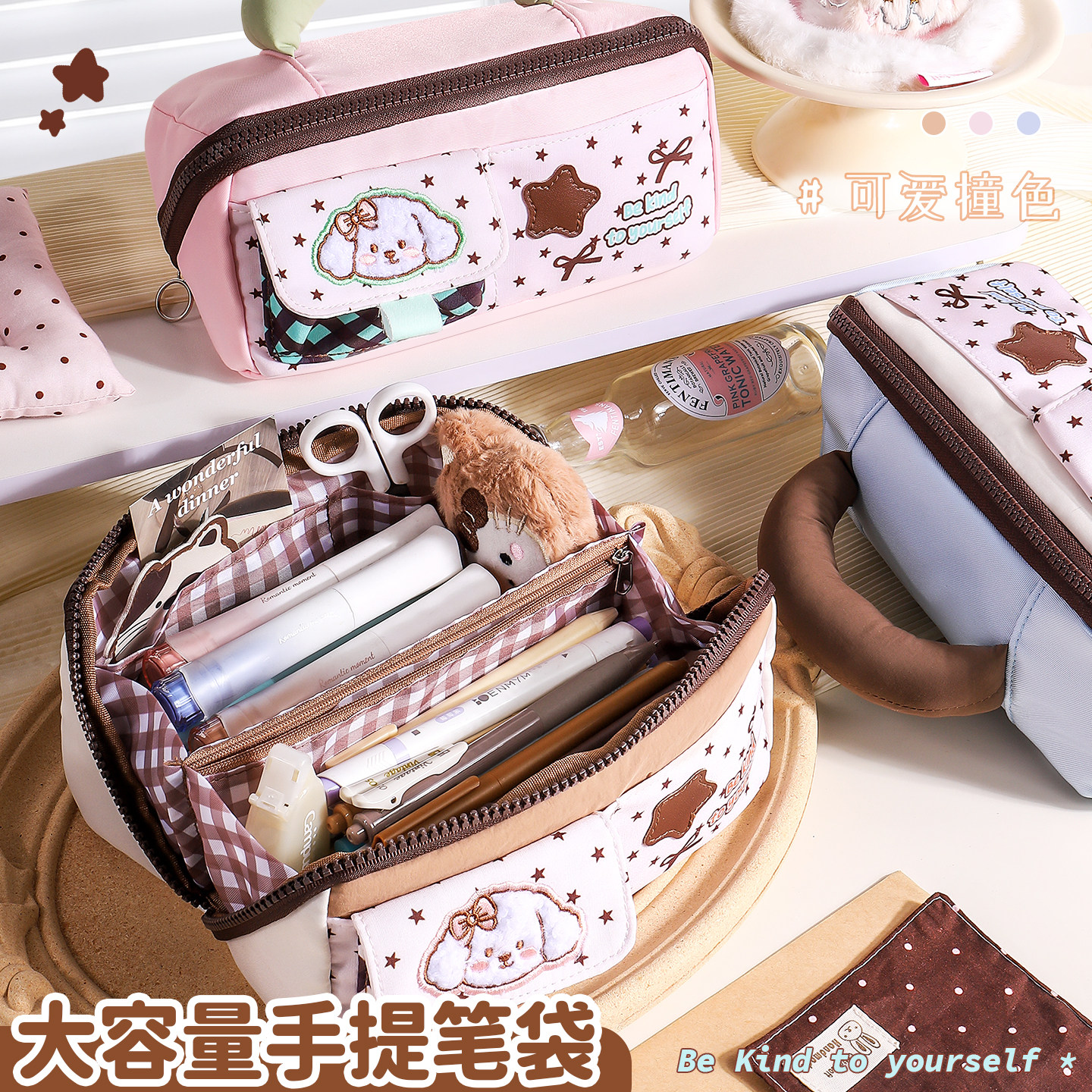 韩系创意星星兔笔袋2026年新款可爱手提铅笔袋女生初中生高颜值文具收纳袋菱形大开口日韩风文具盒多层分隔