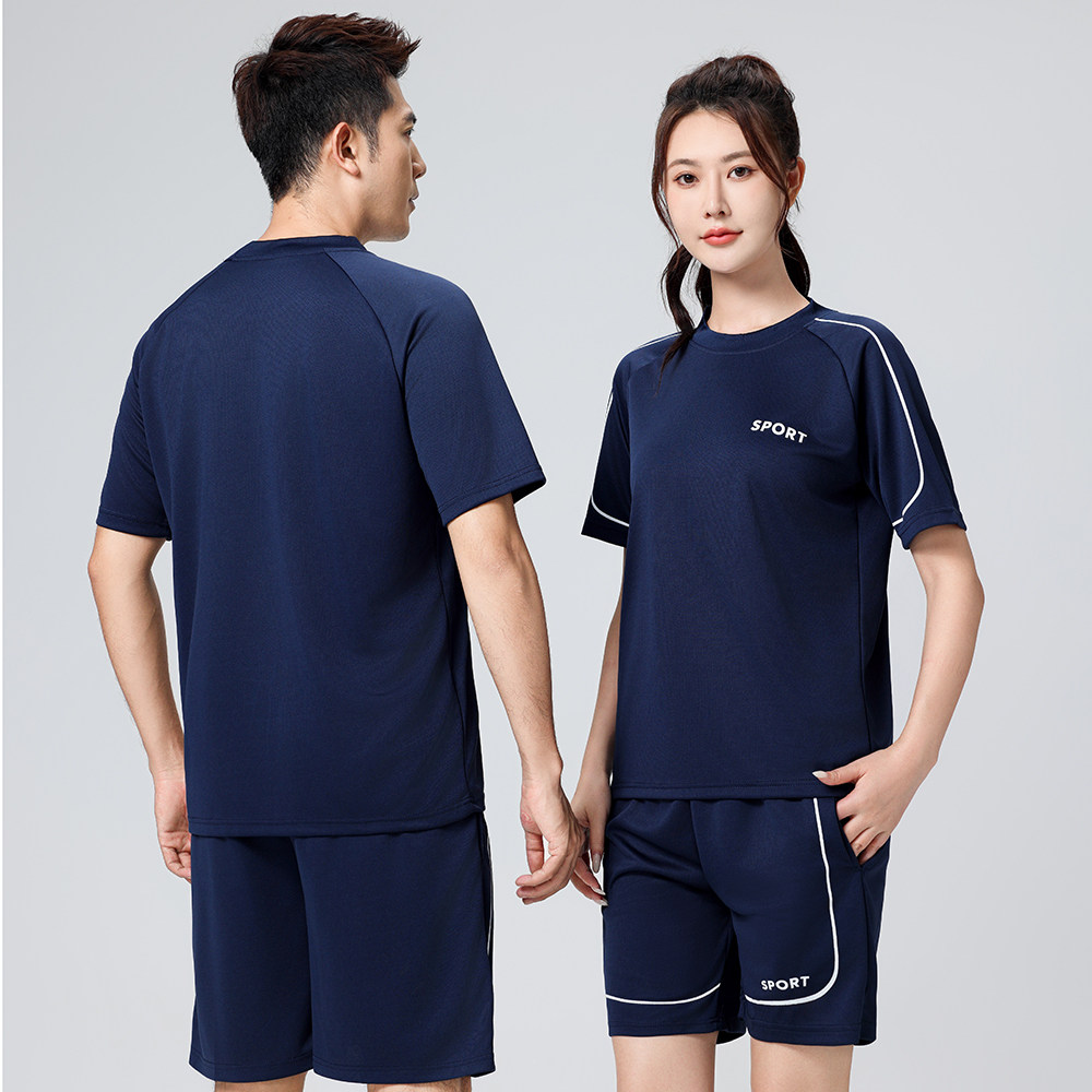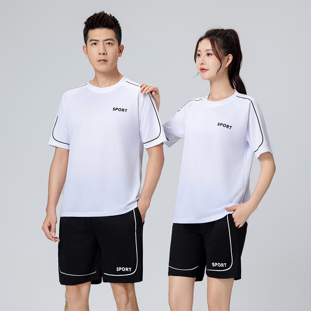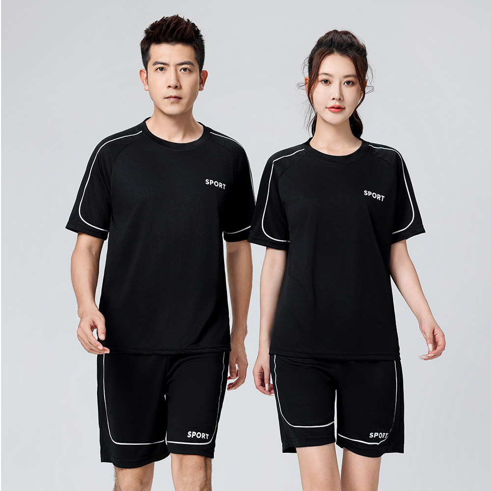 夏季冰丝运动套装情侣速干薄款女款健身羽毛球衣服宽松男士跑步服