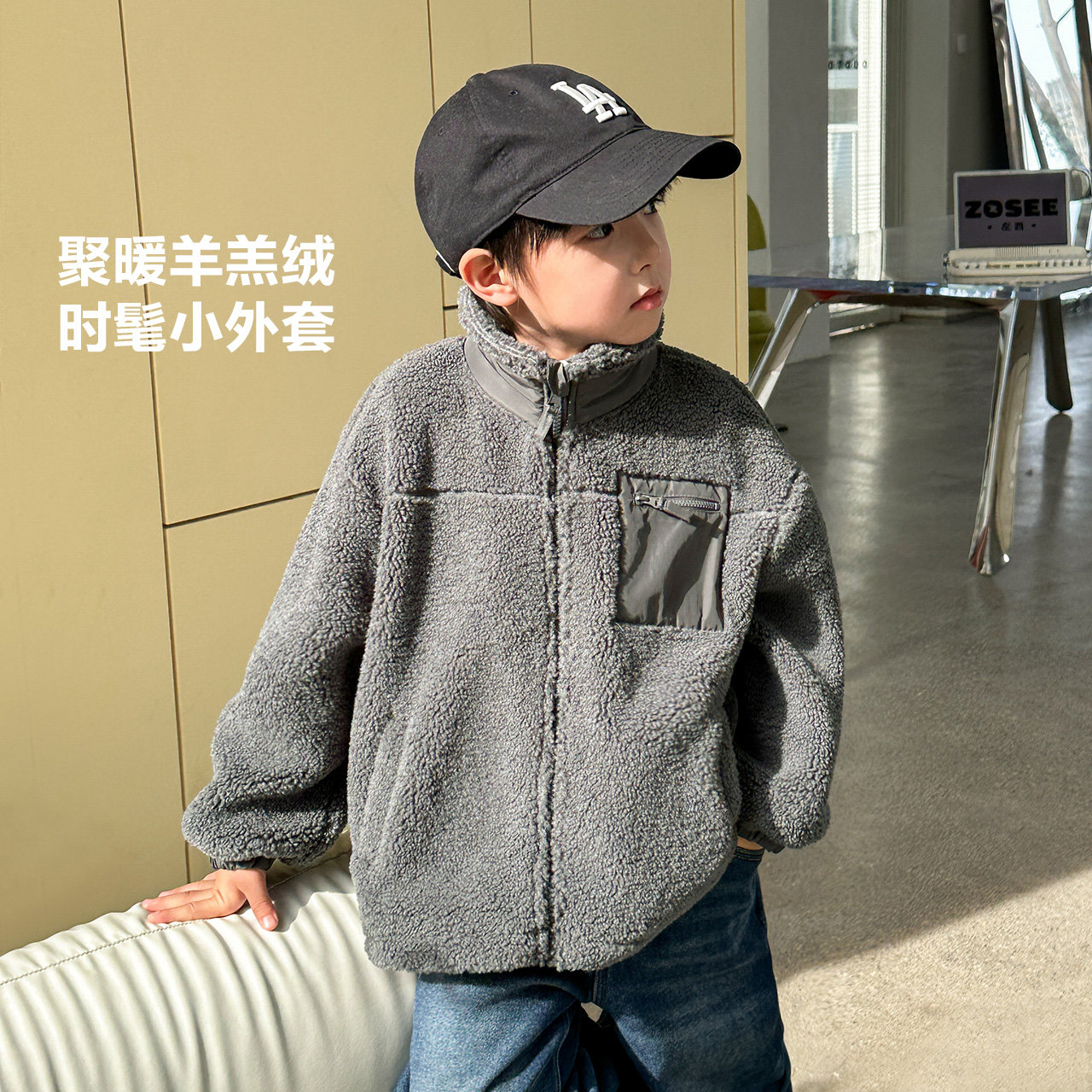 左西童装儿童棉服男童加厚外套2026新款男孩冬季棉衣羊羔绒秋