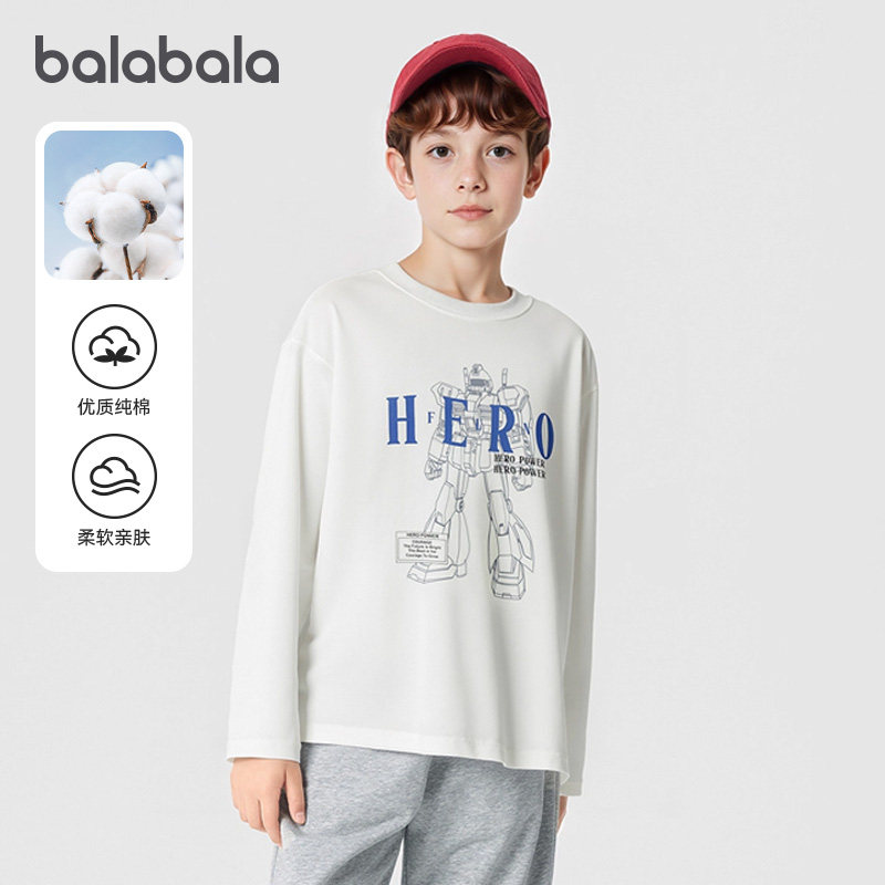 巴拉巴拉男童长袖t恤儿童纯棉打底衫大童上衣春装2026新款童装潮t