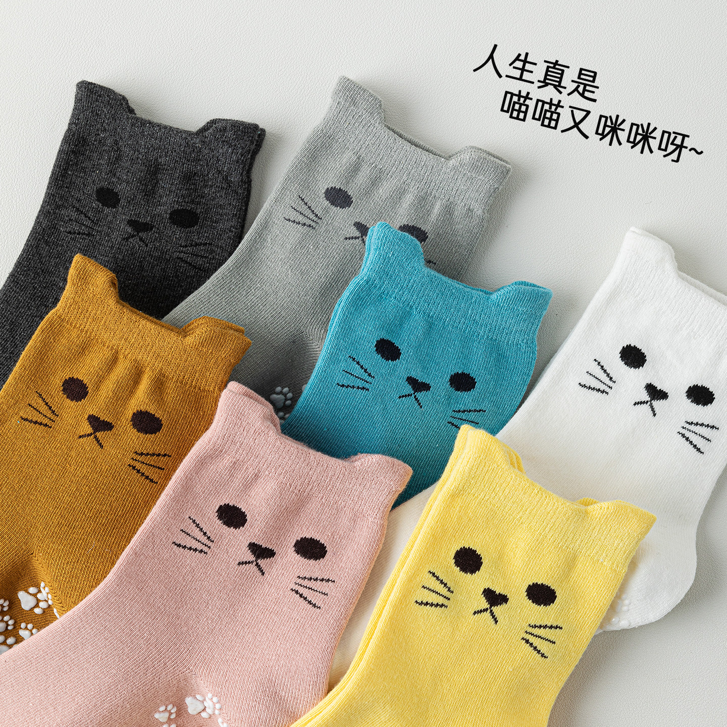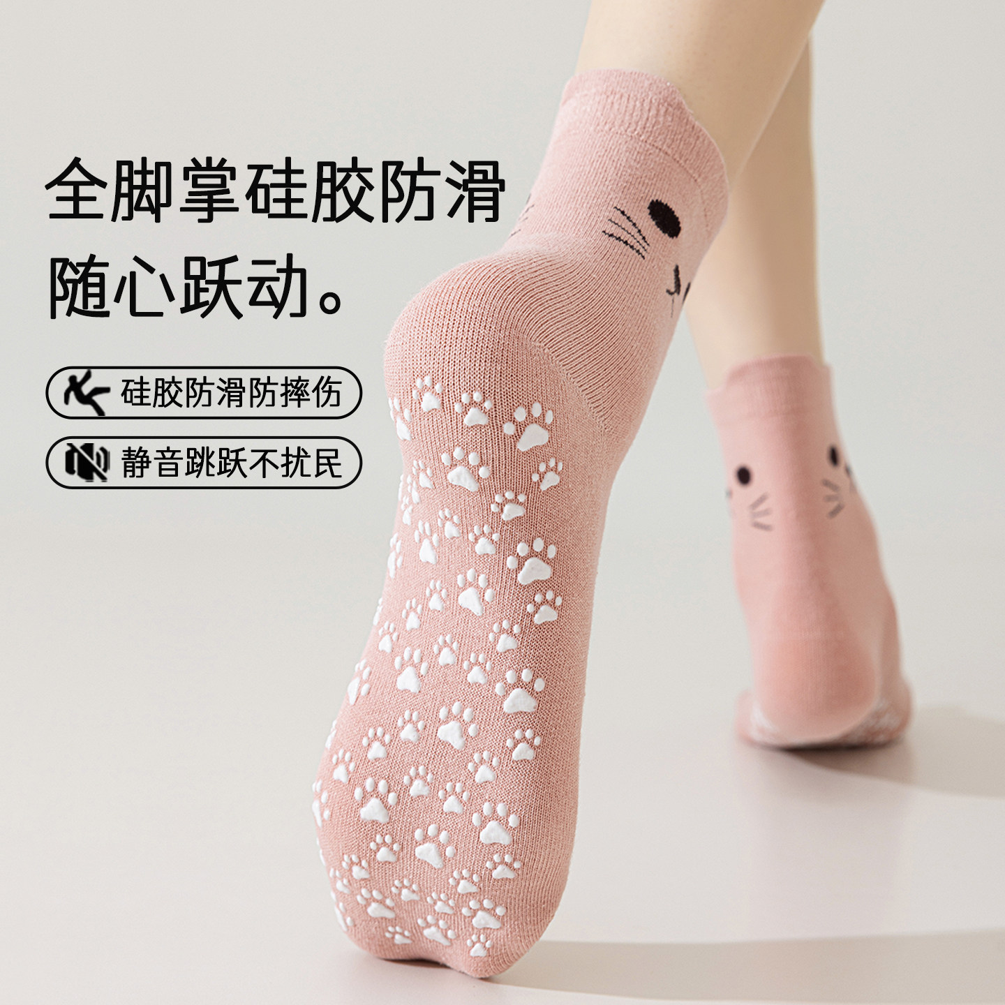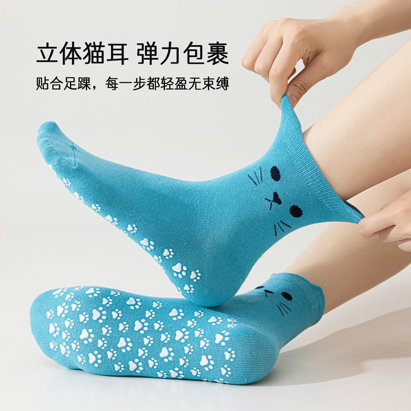 瑜伽袜子女2025新款可爱卡通纯棉中筒袜专业防滑普拉提健身运动袜