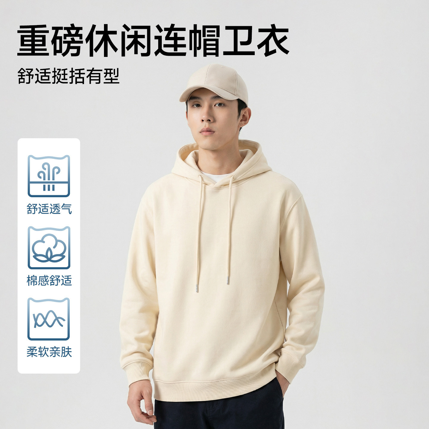 猫人黑色卫衣男重磅宽松百搭连帽衫春季复古潮流高级感外套男款J