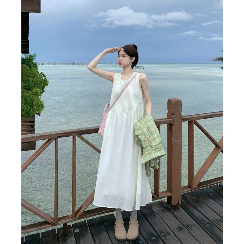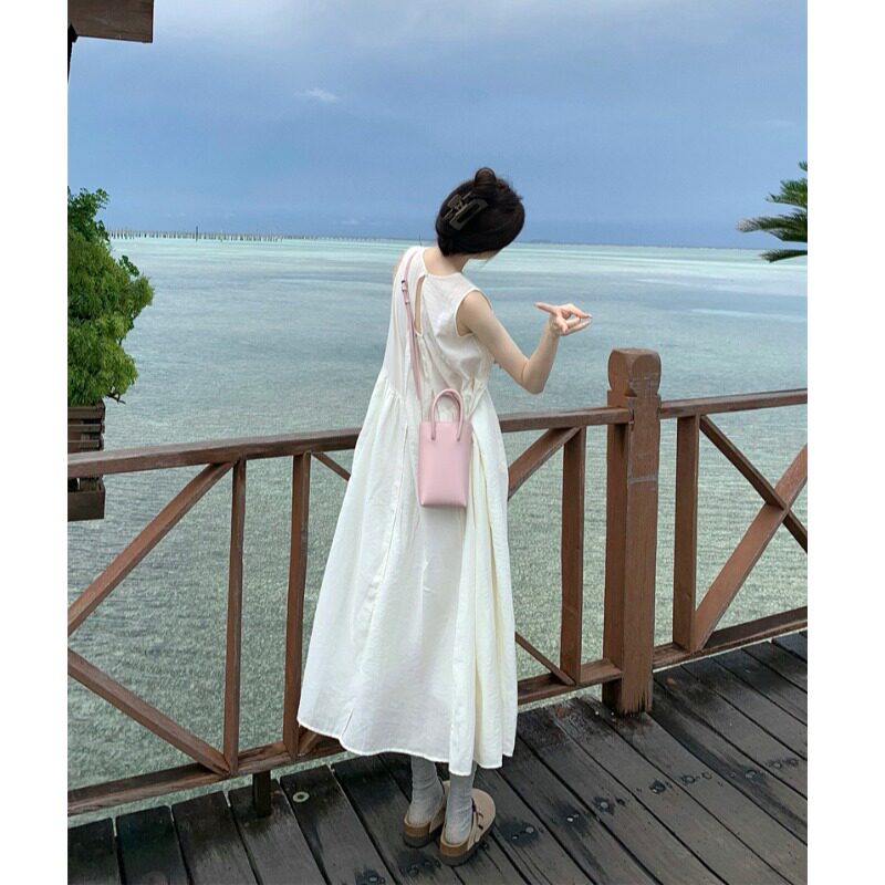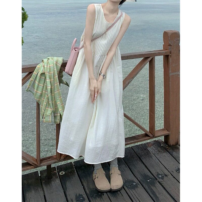 气质打底连衣裙女夏高级感温柔风白色无袖背心裙海边度假内搭长裙