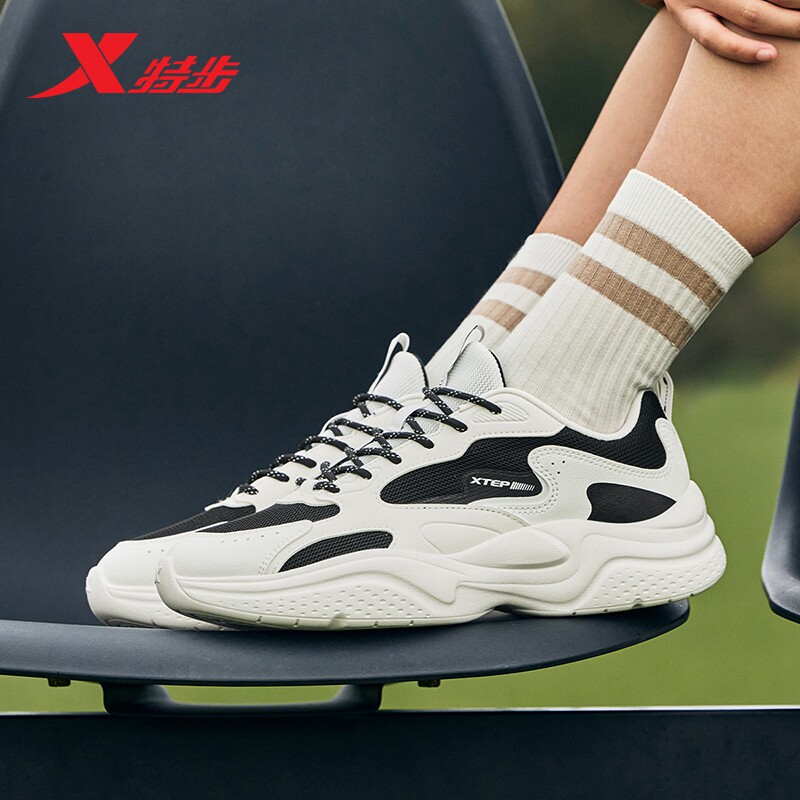 特步休闲鞋女鞋2026春季新款网面透气厚底增高轻便老爹鞋运动鞋子