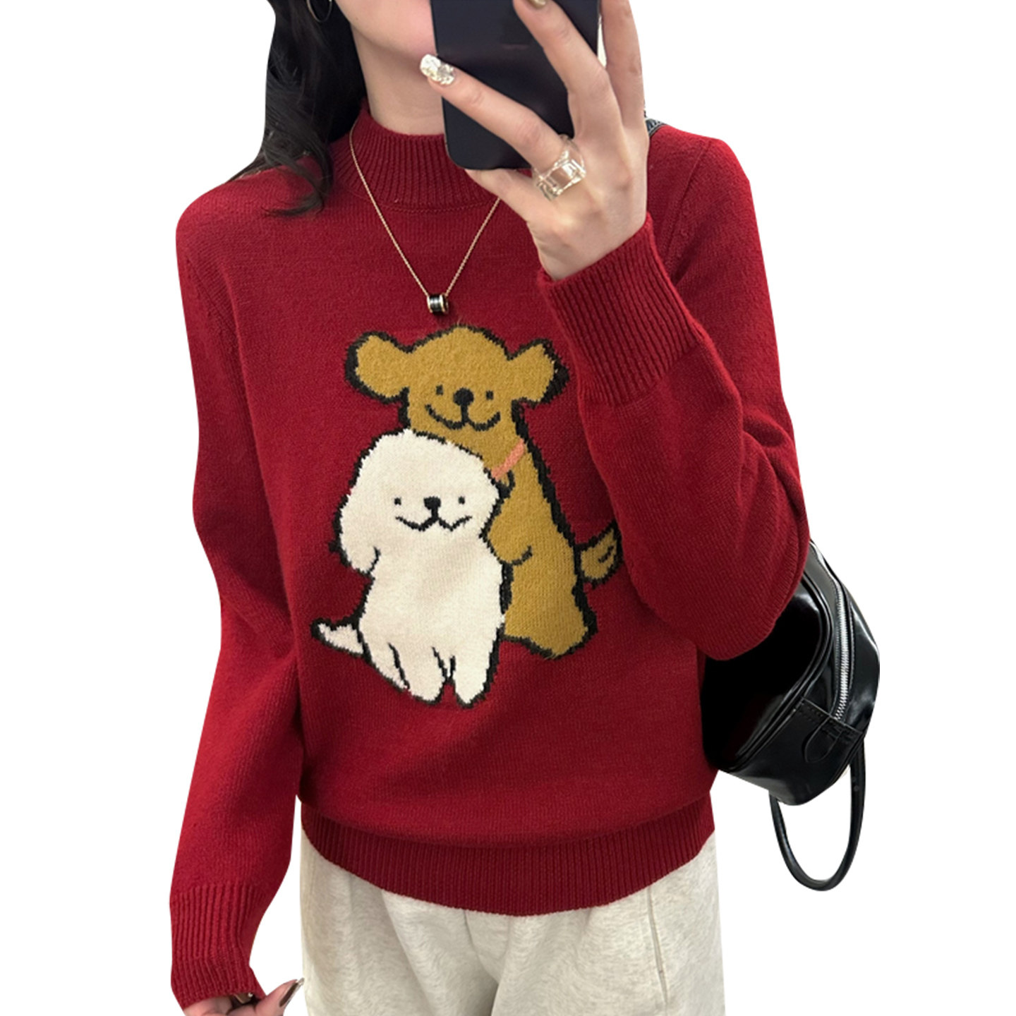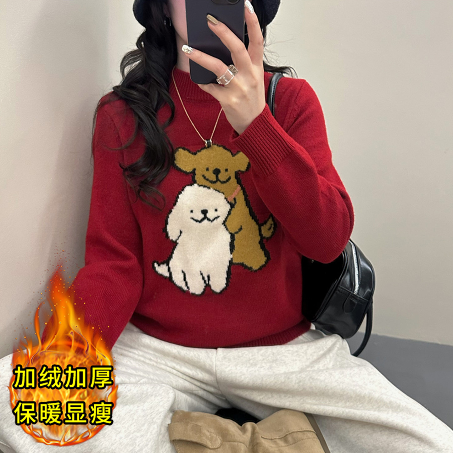 红色毛衣女款2026新款冬季内搭女上衣加绒加厚慵懒风针织衫女打底
