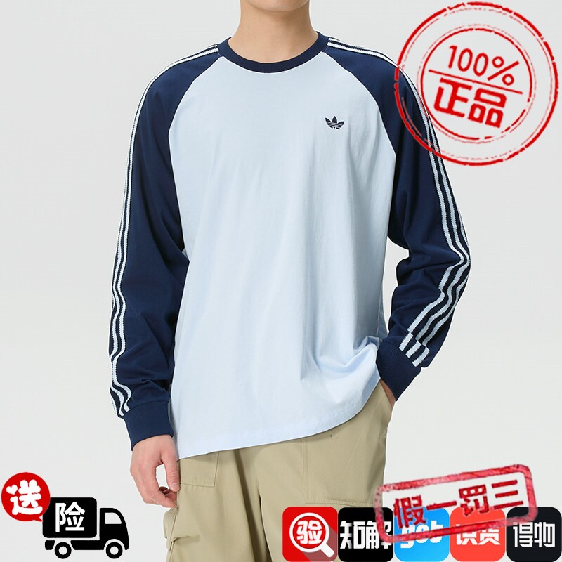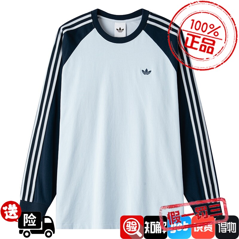 阿迪达斯长袖T恤男装2026春夏新款运动休闲圆领套头衫上衣KV4447