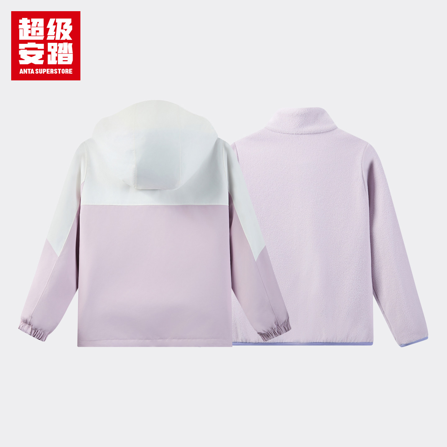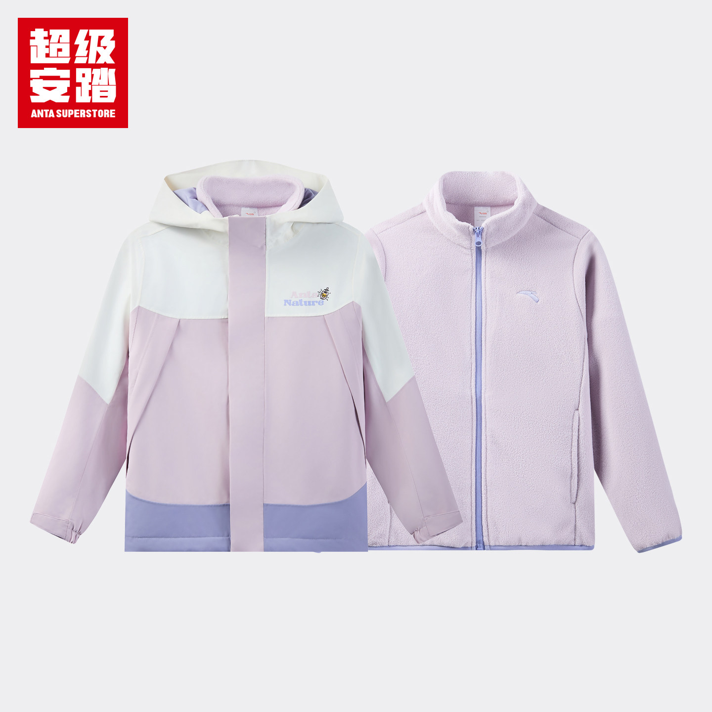 超级安踏儿童冲锋衣两件套春季女保暖连帽外套抓绒内胆362616609U