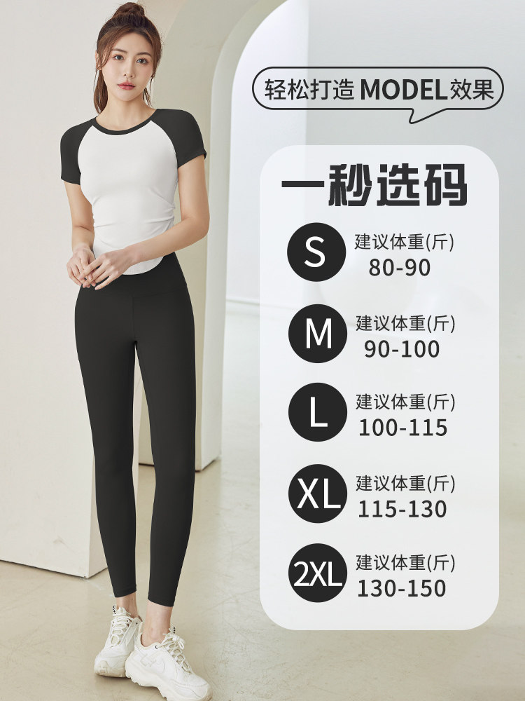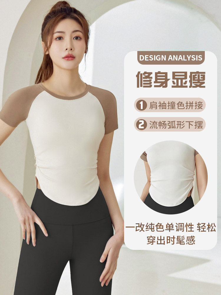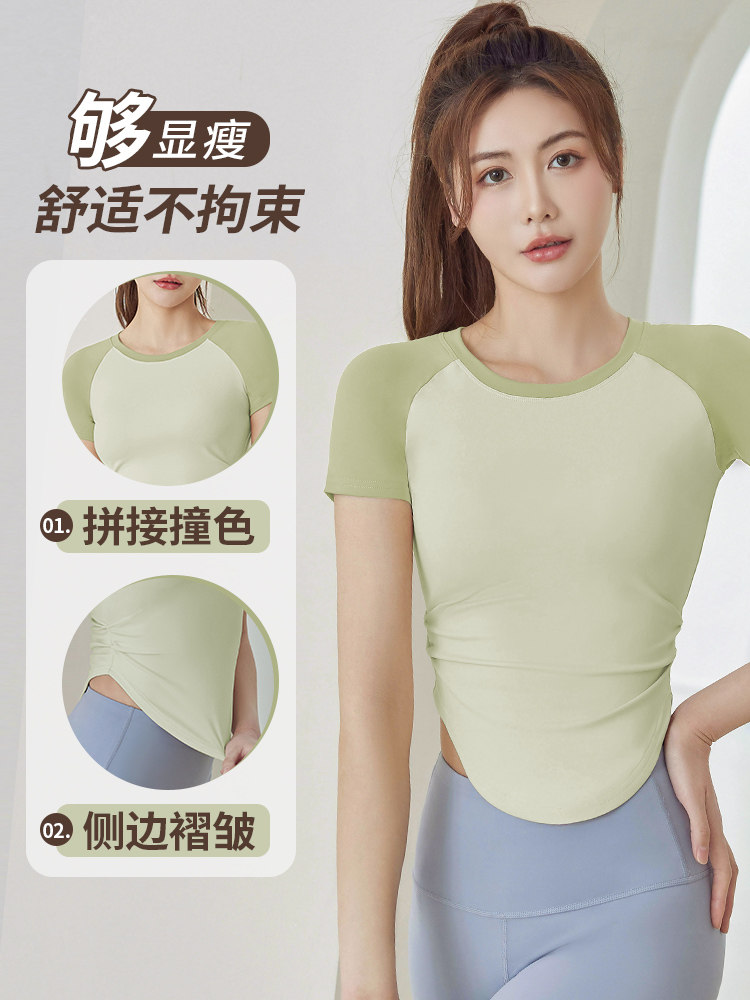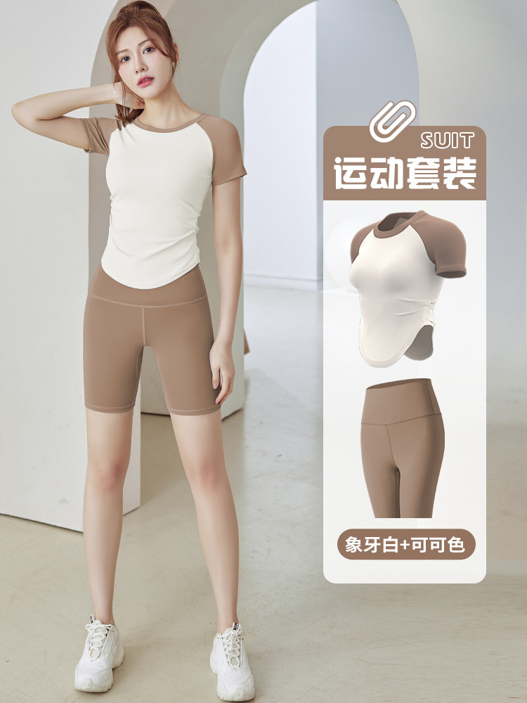夏季2023新款薄款瑜伽服套装女撞色显瘦速干短袖普拉提运动健身服