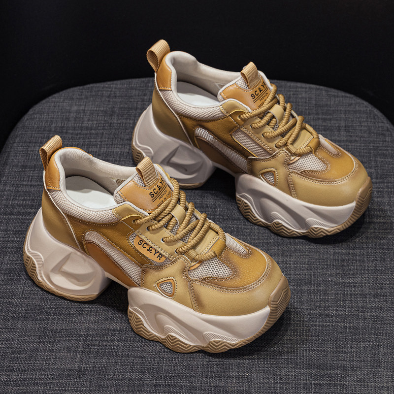 透气网面老爹鞋女2026新款夏季薄款真皮复古轻便增高厚底休闲运动