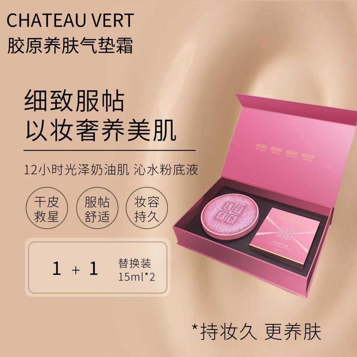 谢宝悦CHATEAU VERT胶原养肤气垫霜遮瑕亮肤不脱妆不卡粉持久