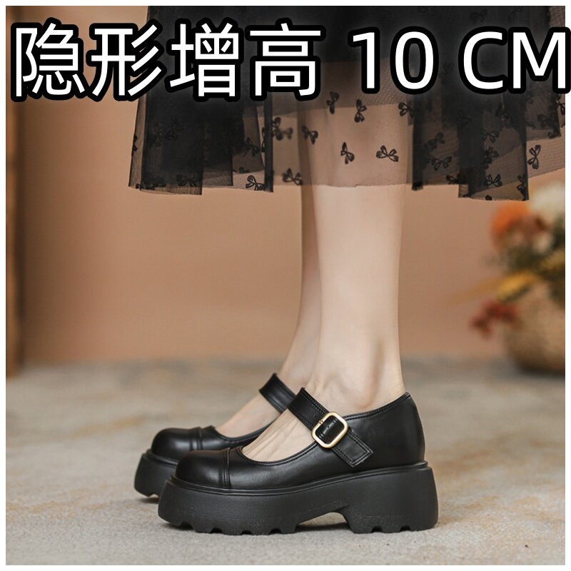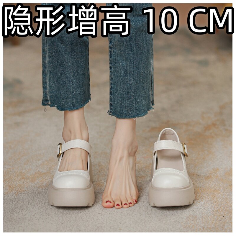 内增高女鞋10cm玛丽珍黑色真皮白色3334浅口春一字扣工作皮鞋厚底