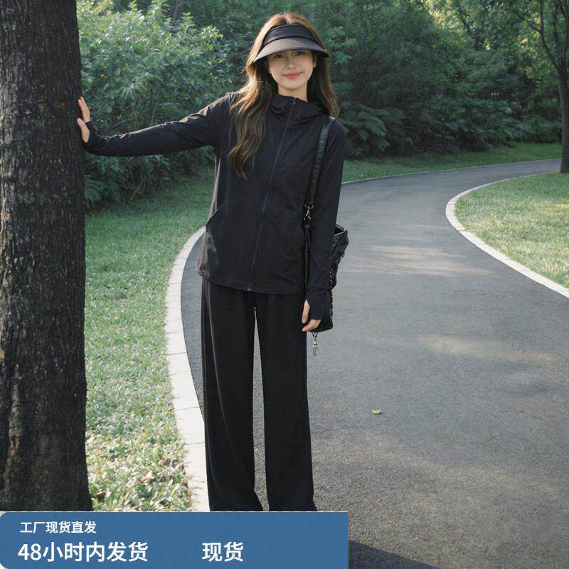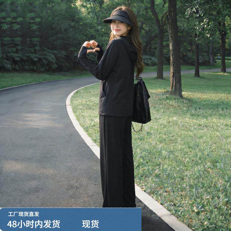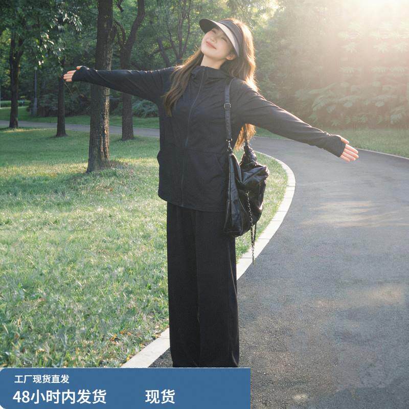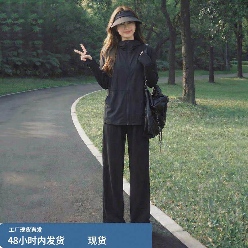 冰丝防晒衣休闲运动套装女夏季薄款大码胖mm宽松小个子跑步两件套
