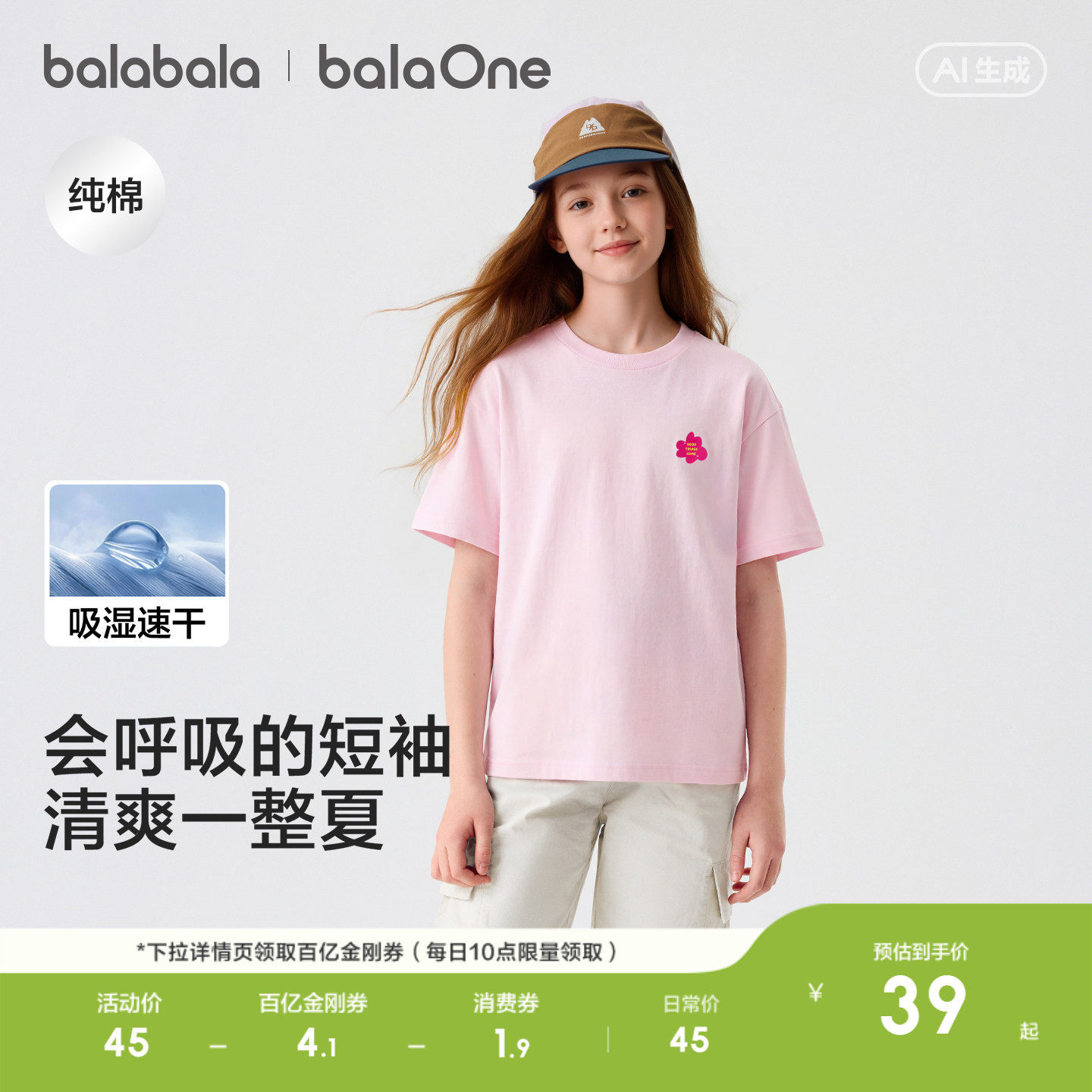 巴拉巴拉童装儿童短袖t恤男童女童2026新款夏装纯棉速干亲子上衣