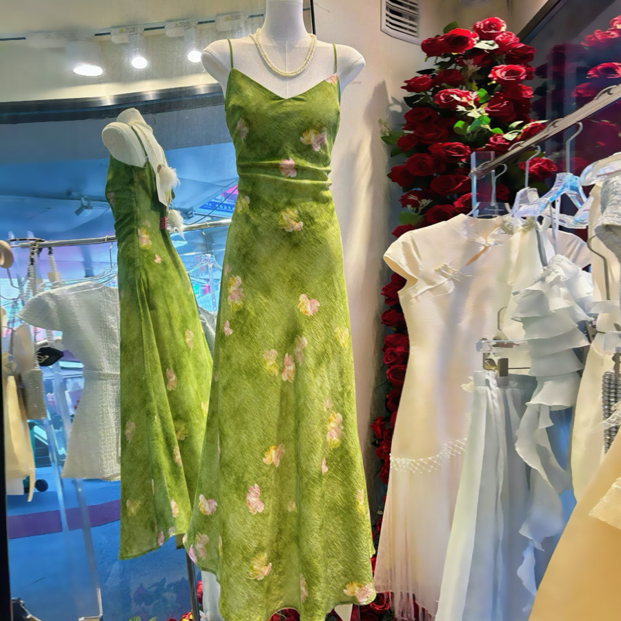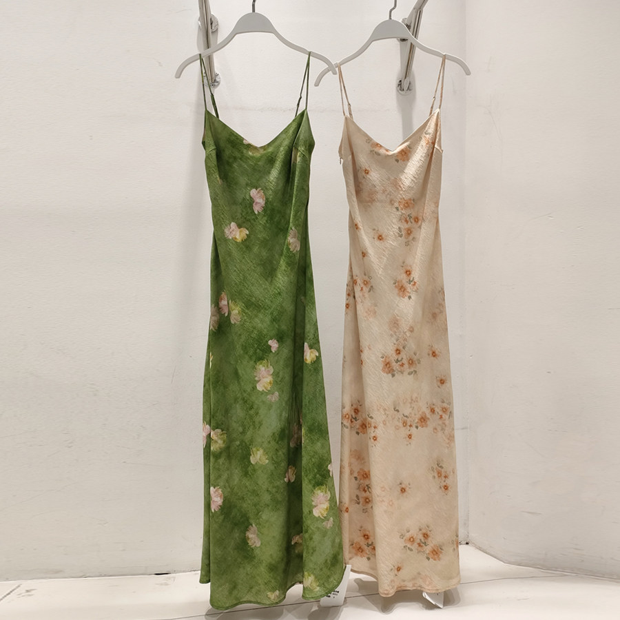 2025夏季新款法式气质碎花吊带裙修身显瘦V领收腰大摆长款连衣裙