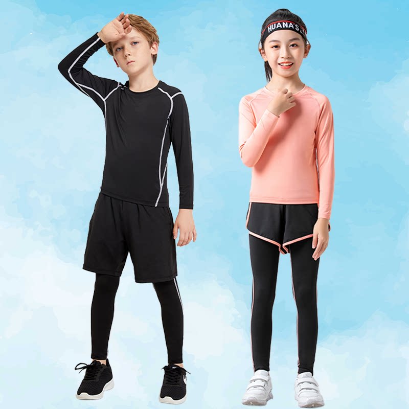 儿童春夏装运动套装女童瑜伽服训练服男童体育运动跑步健身速干衣