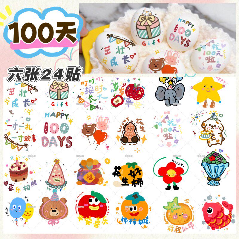 百日宴鸡蛋纹身贴一周岁礼喜蛋贴纸宝宝满月百天生日宴抓周男女孩