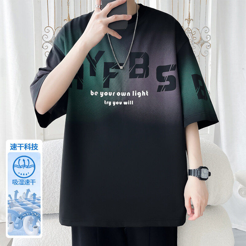 冰丝速干短袖t恤男孩青少年夏季新款初中学生上衣帅气打底衫男装