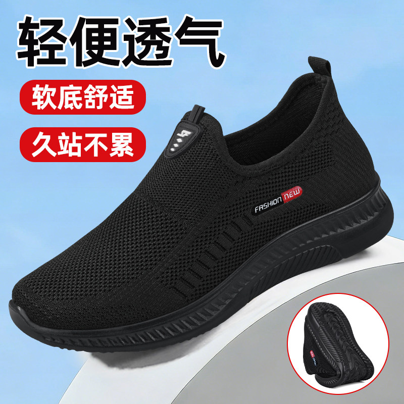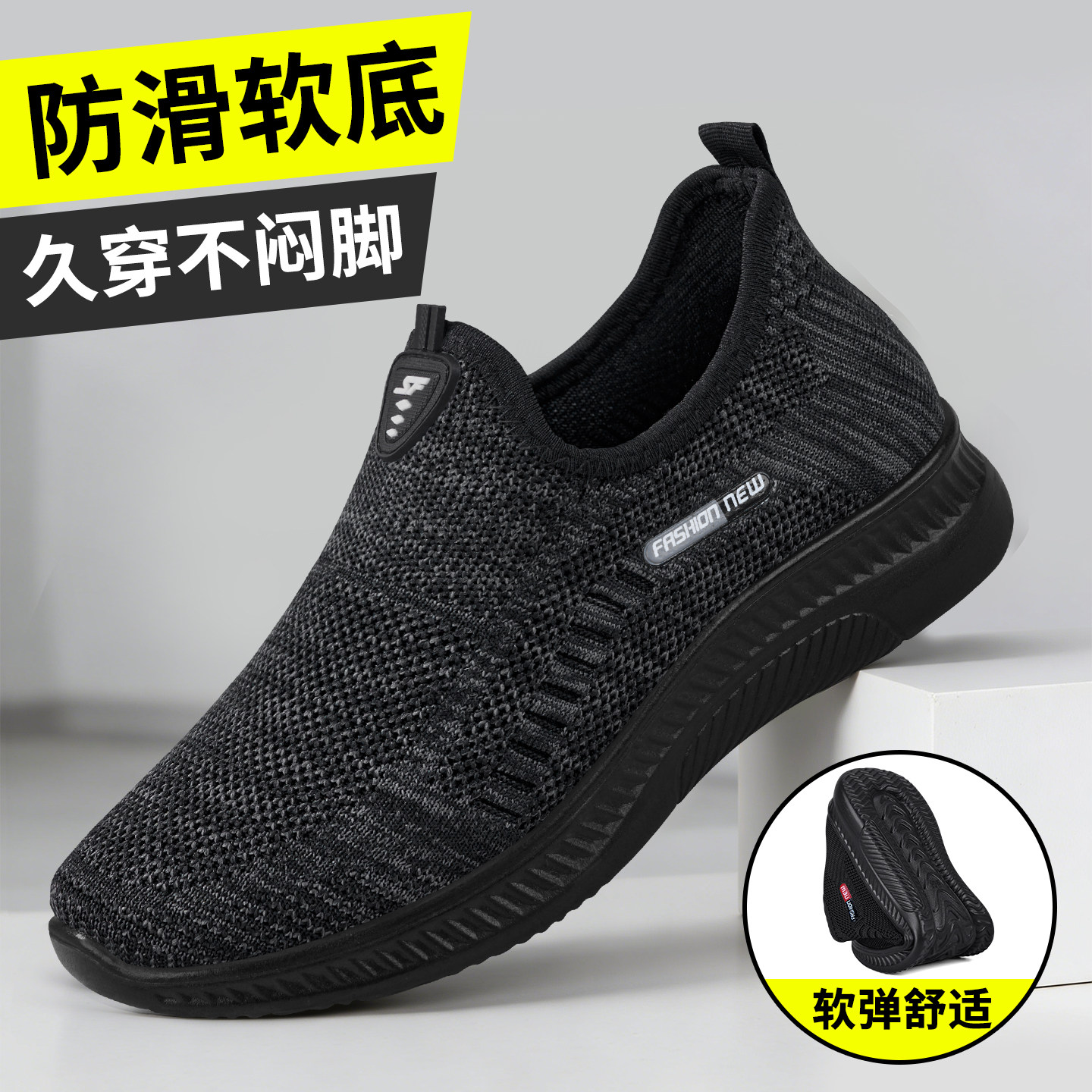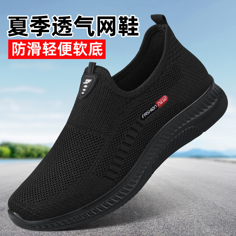 老北京布鞋夏季男士网面透气一脚蹬轻便软底休闲运动鞋防滑爸爸鞋