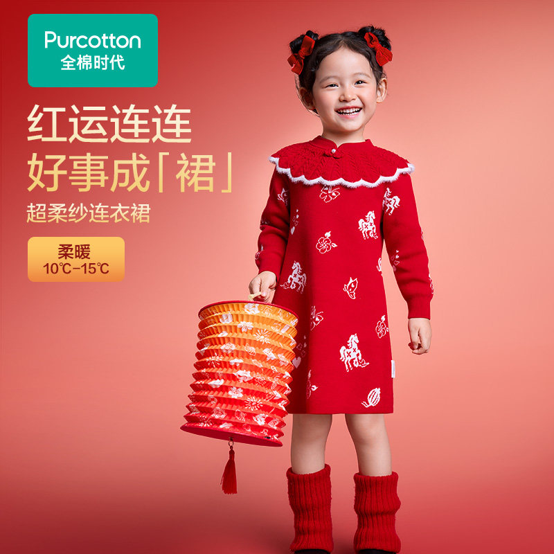 【下拉详情领补贴】全棉时代女童连衣裙拜年服新年圣诞过年26新款