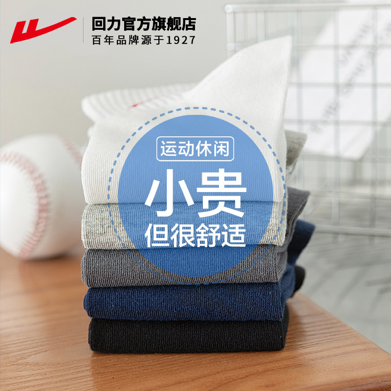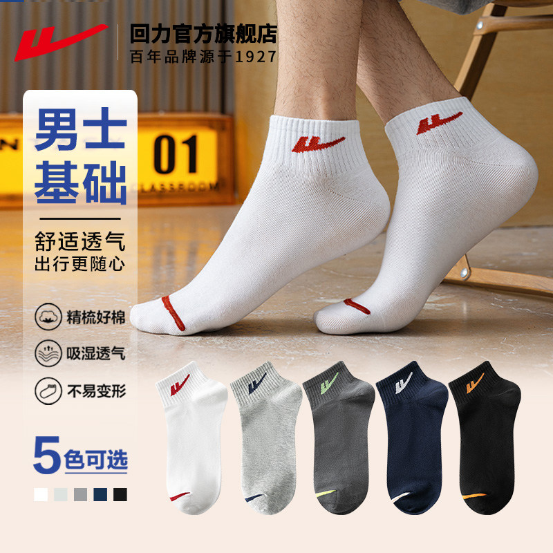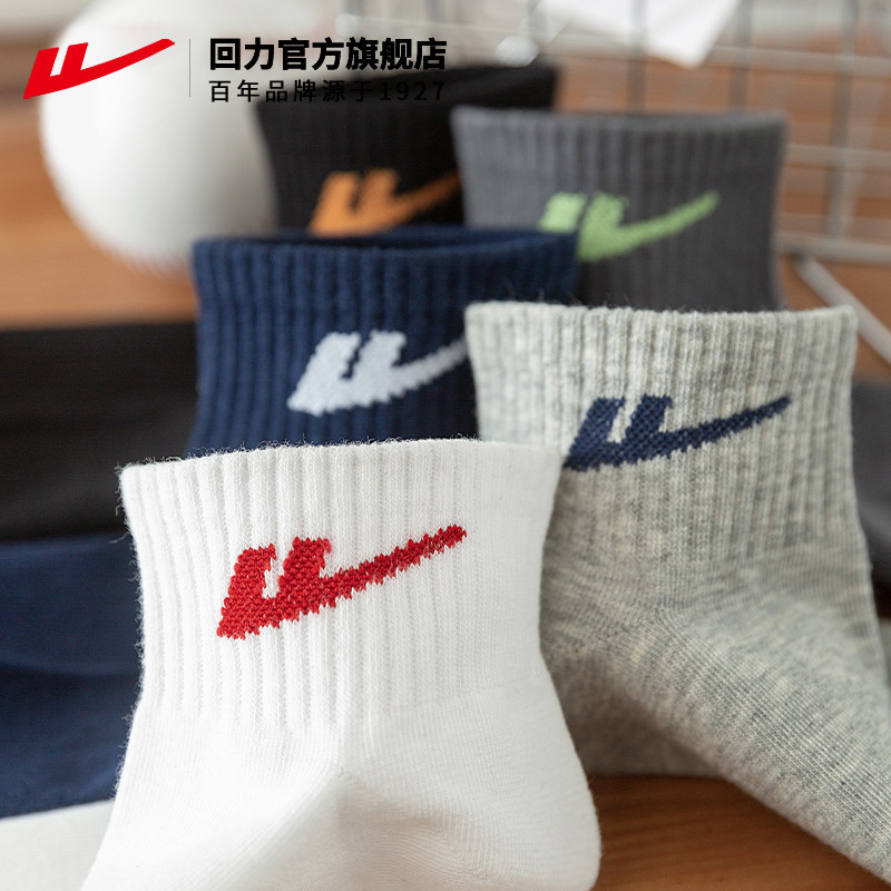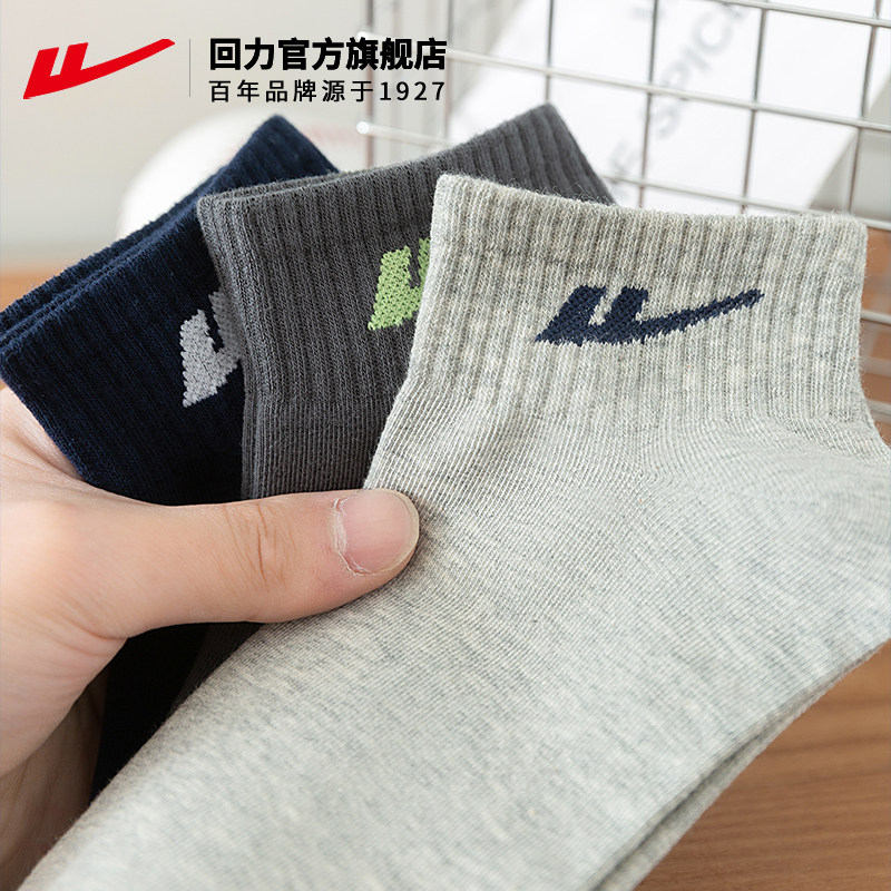 回力运动短筒袜子男秋冬新款纯色吸汗透气短袜白色男士纯棉袜男款