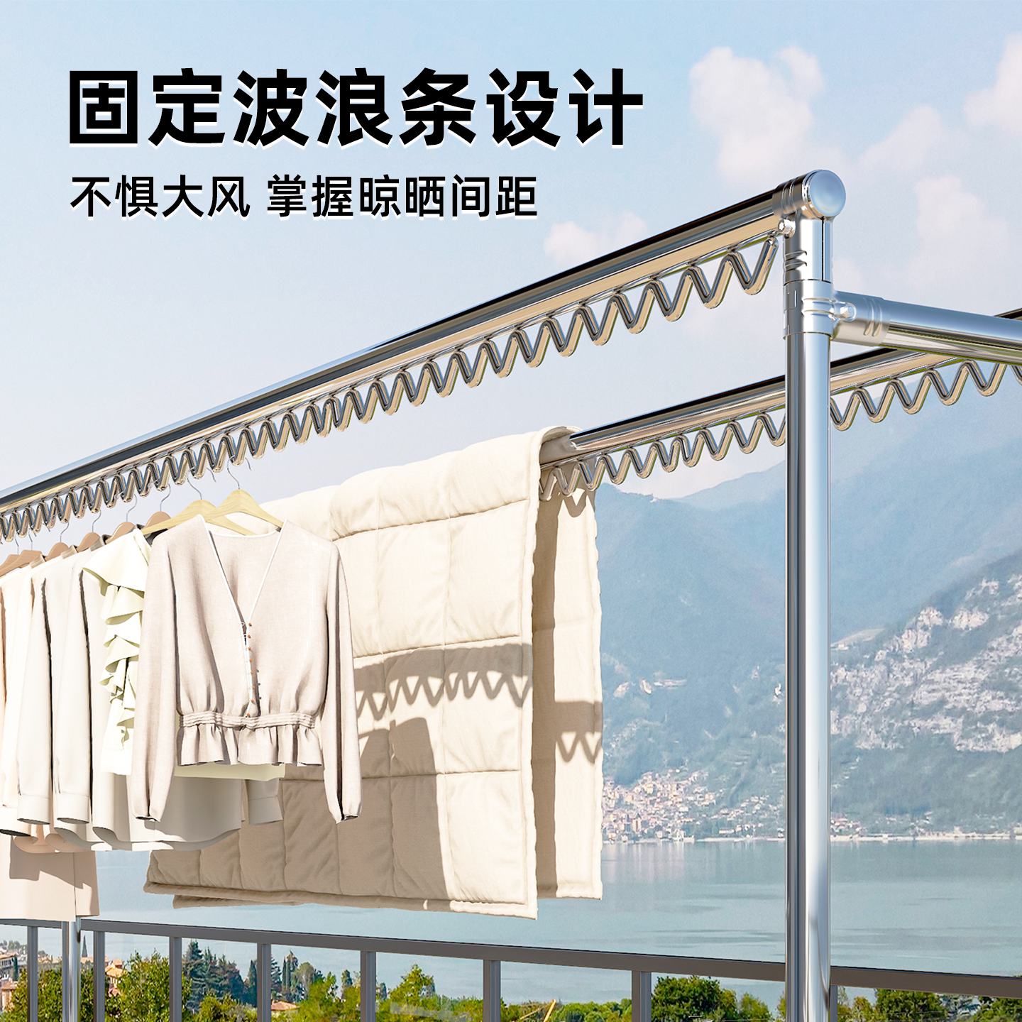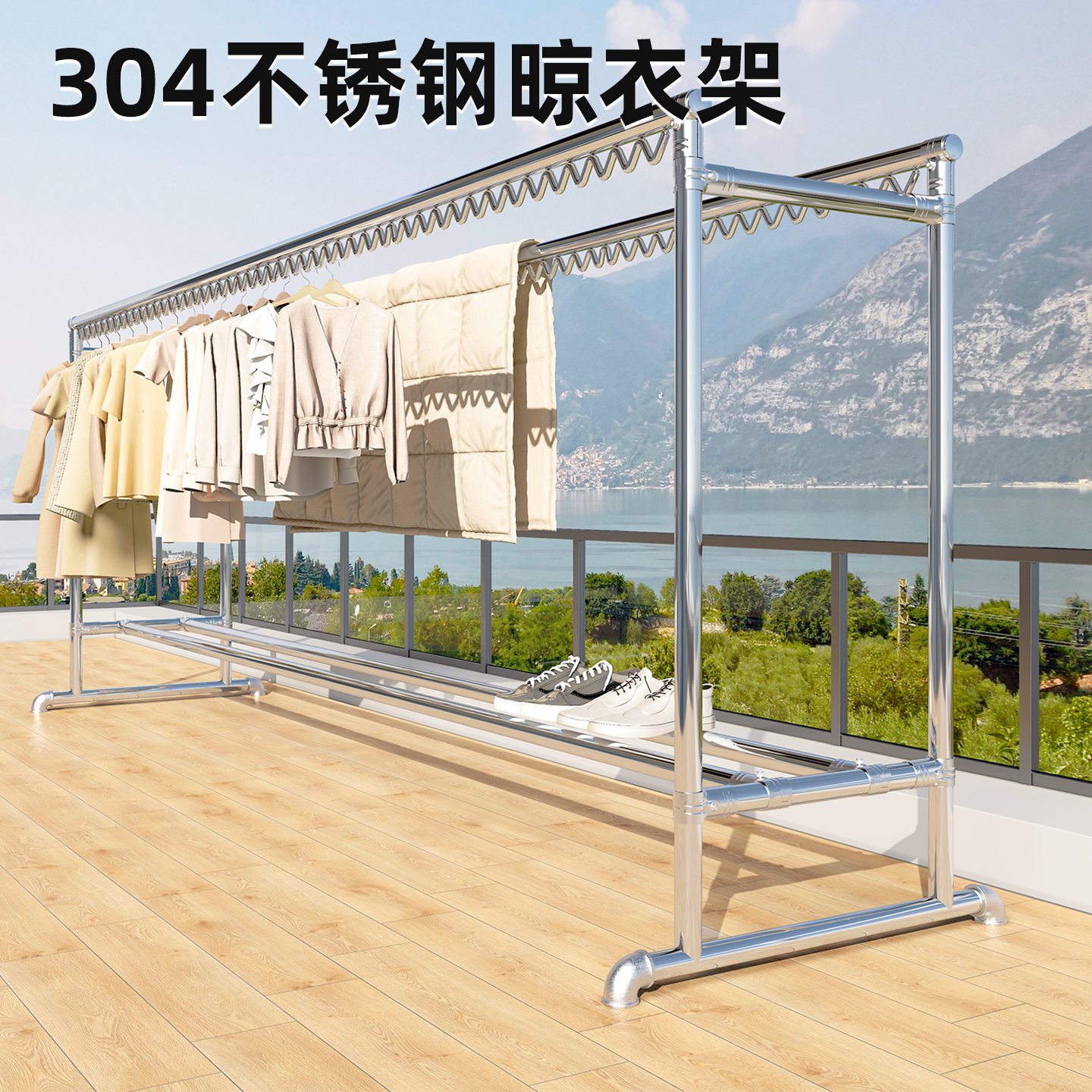 304不锈钢晾衣架落地式家用阳台庭院防风晾衣杆户外可移动晒被架
