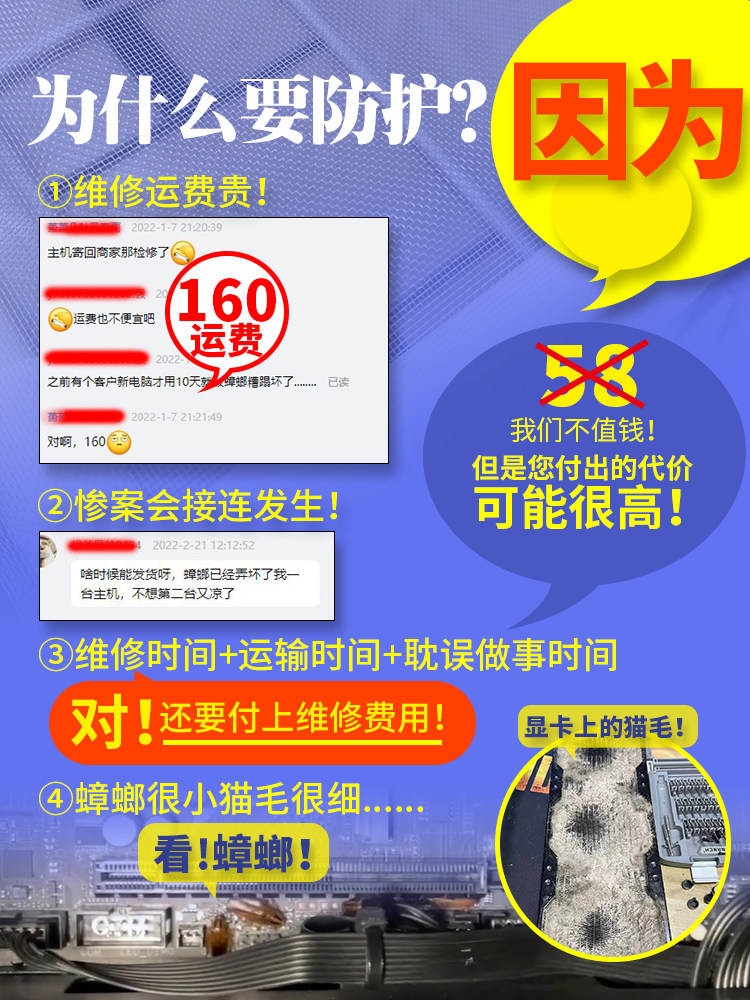 电脑主机防尘网机箱防蟑螂罩散热非磁贴防猫毛全包海景房保护套