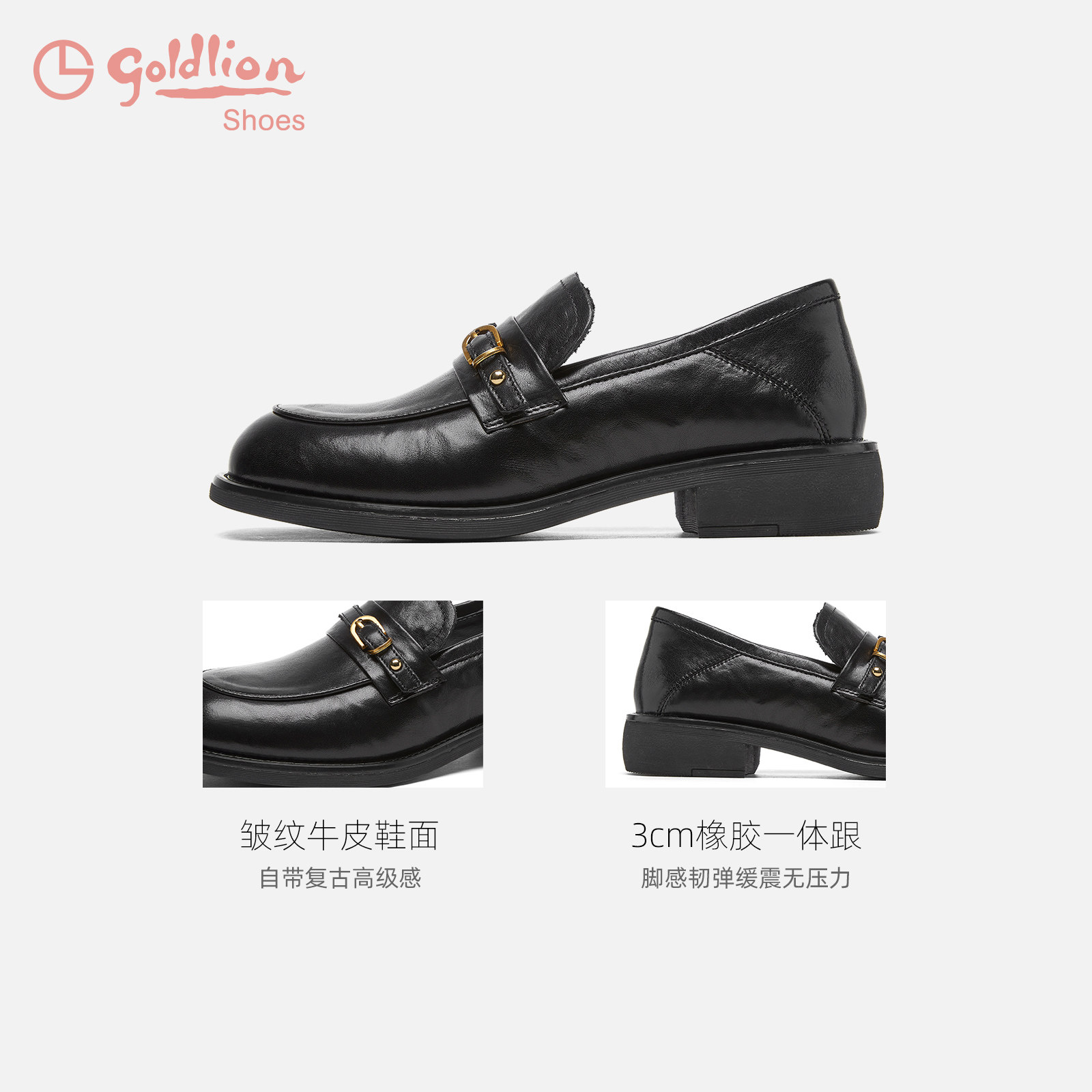 金利来一脚蹬乐福鞋女2026春季新款女鞋舒适通勤黑色百搭真皮单鞋