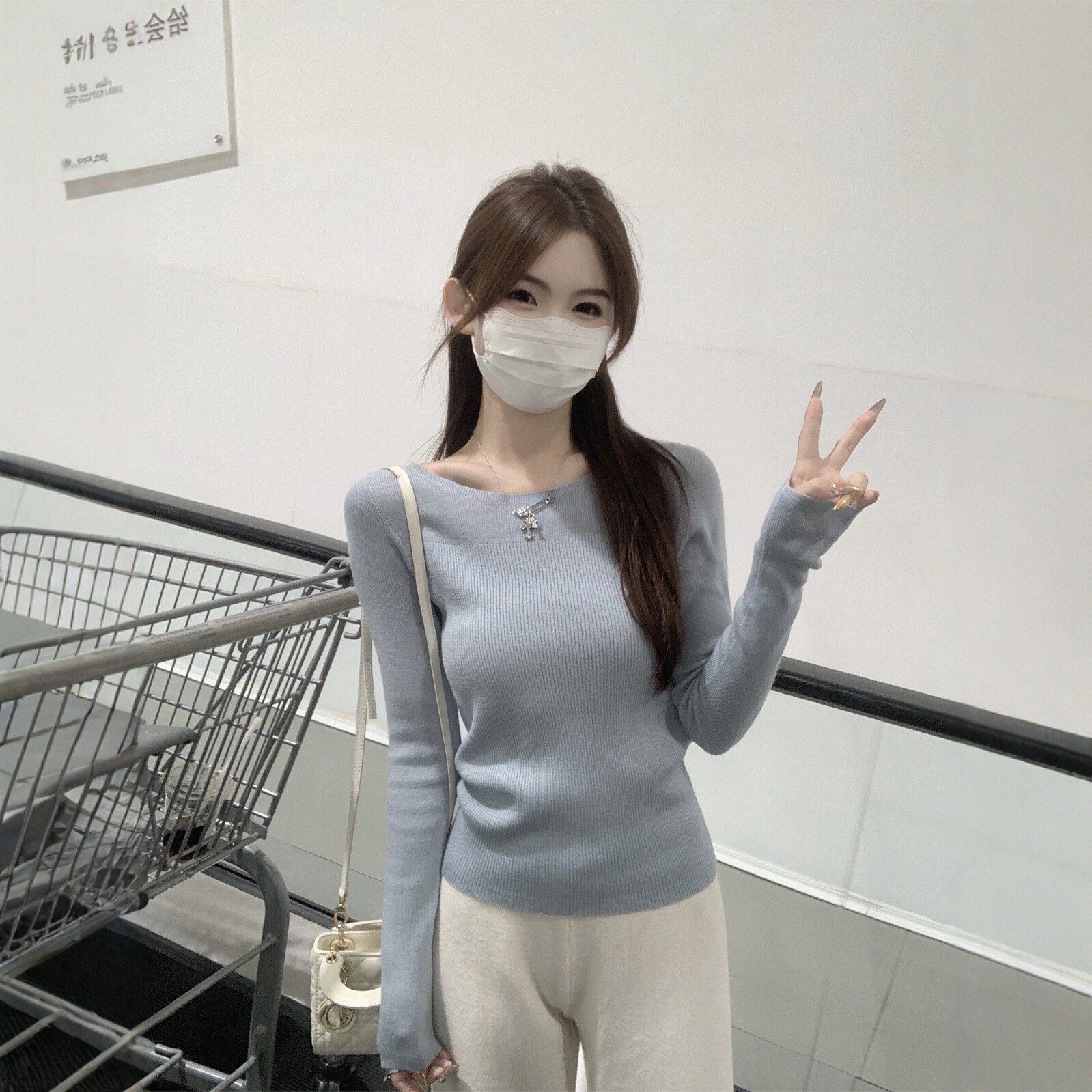 2026年春季新款韩系修身显瘦温柔风长袖针织衫女打底毛衣内搭上衣