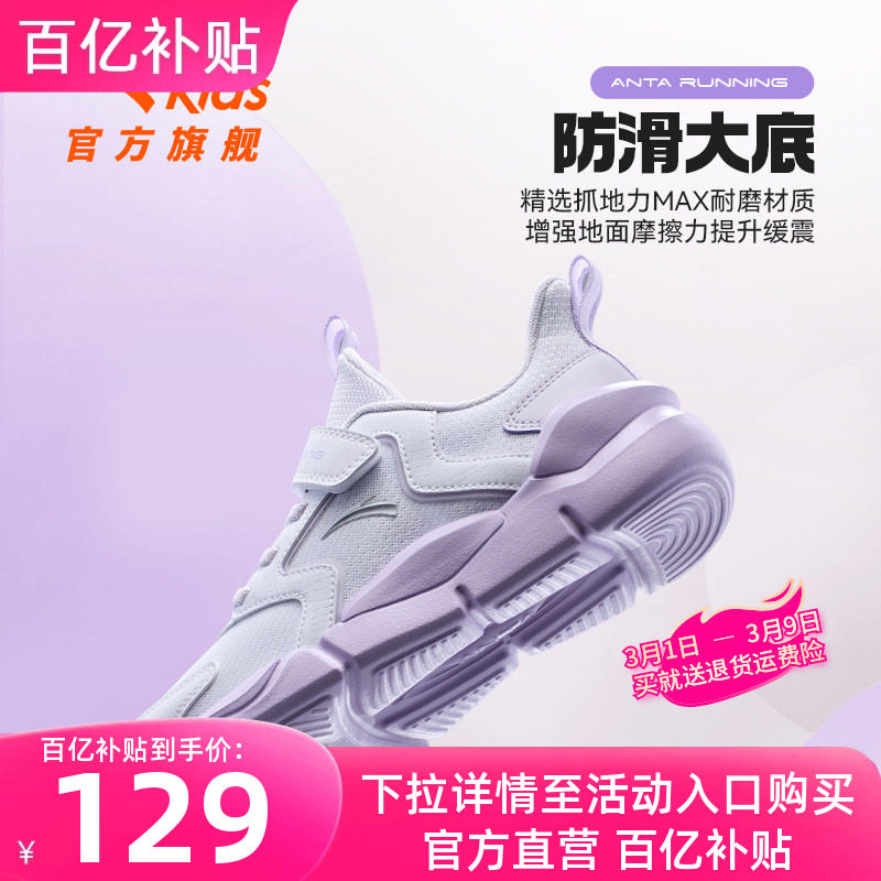 311线报网描述:安踏儿童女童运动跑步鞋革面保暖防水